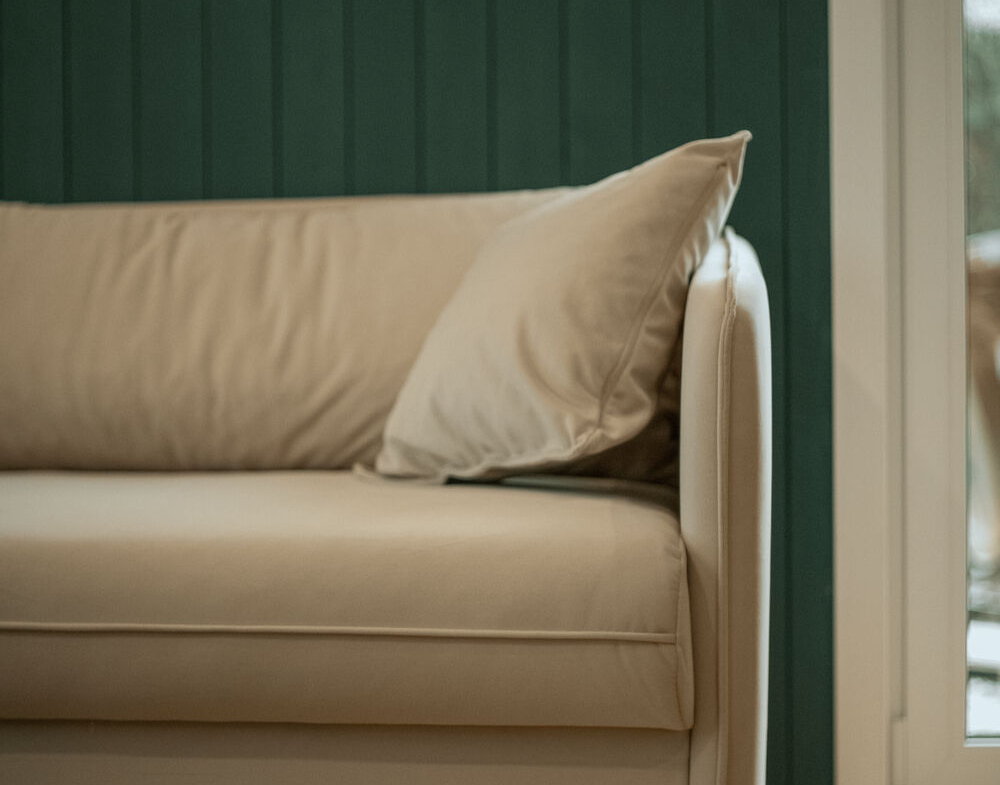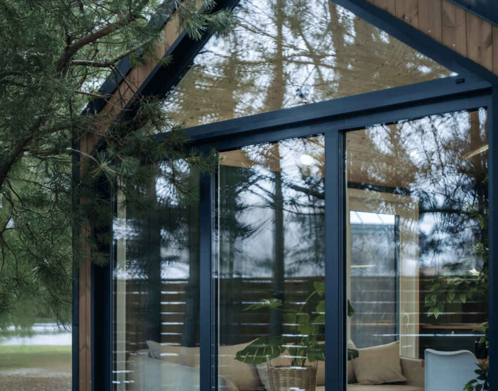 From the outside, Sky attracts attention with its aesthetic façade made of thermo-pine and metal cladding. The entrance leads through single triple-glazed doors, and all windows (also triple-glazed) provide excellent insulation and outstanding interior lighting.