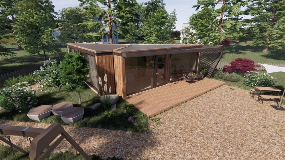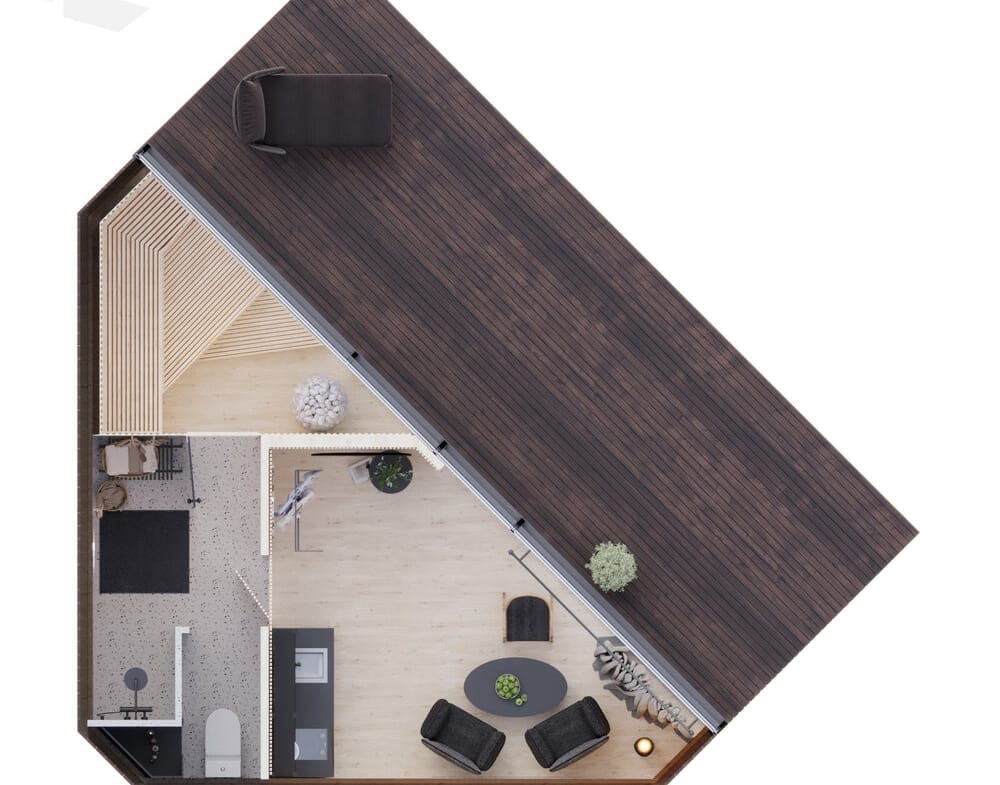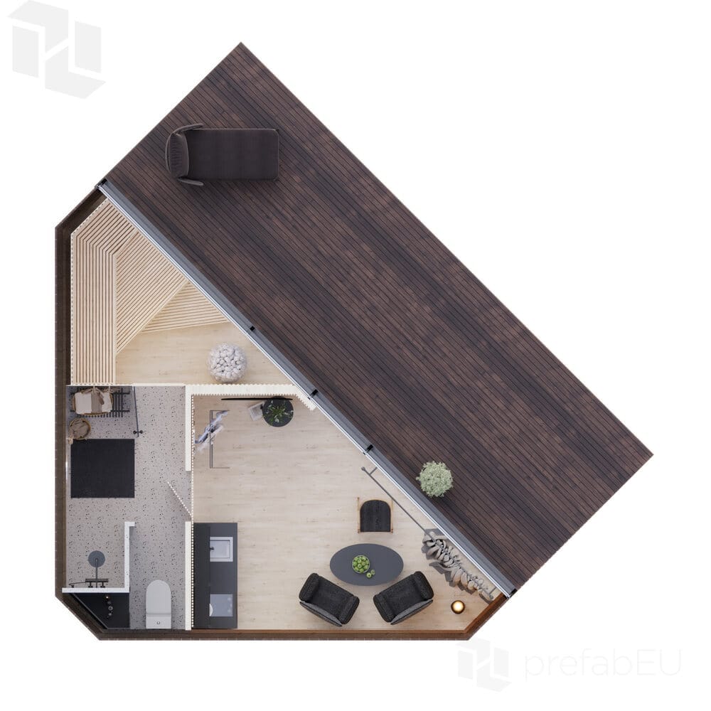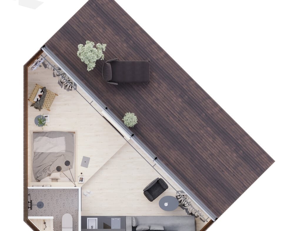 Corner House is a prefab house built by CompactLiving, a prefab manufacturer based in Estonia. This prefab house provides 19.5 m² of living space which can accommodate 2 people.