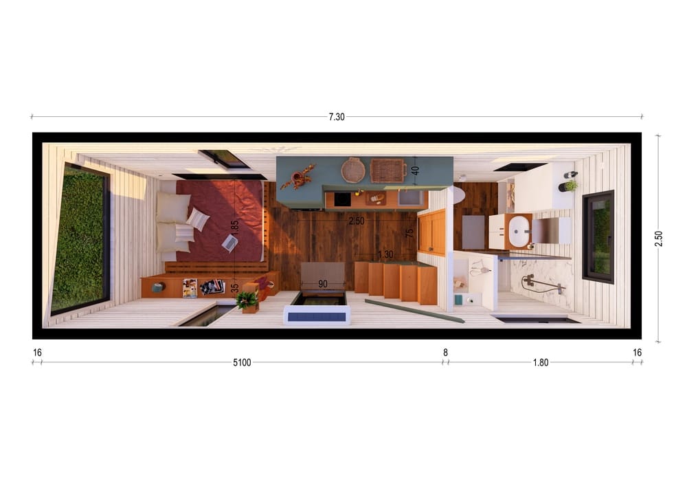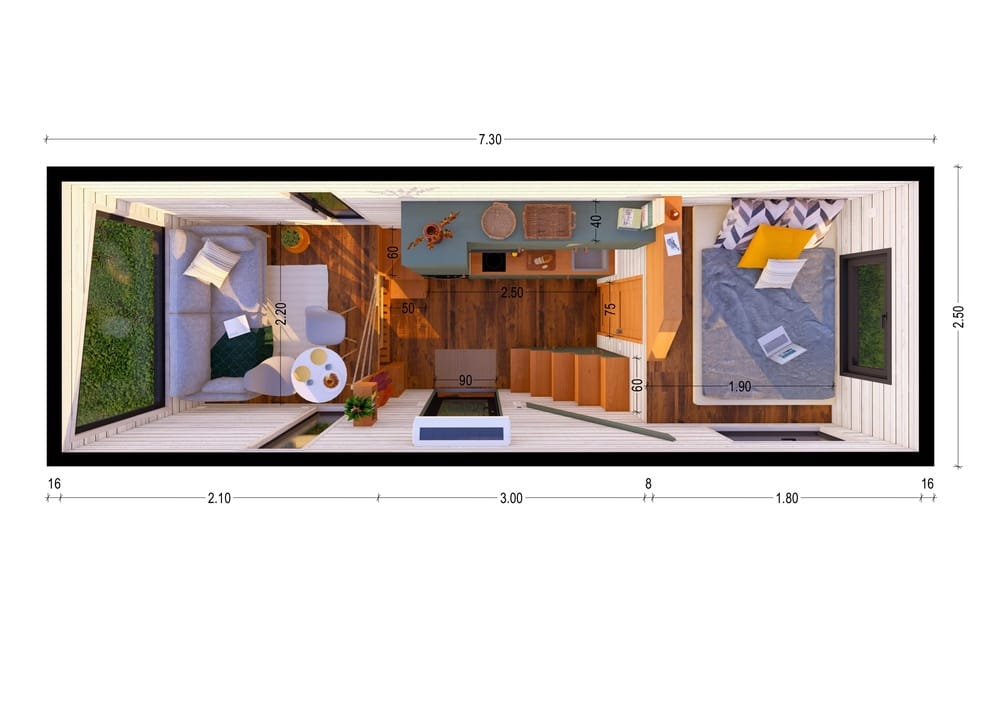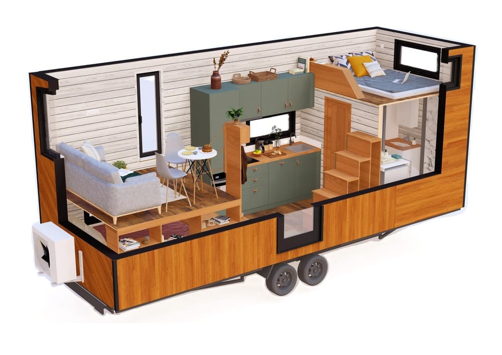 Tiny Getaway is a tiny house built by Eco Tiny House, a manufacturer based in Romania. This tiny house provides 19.2 m² of living space which can accommodate up to four people.