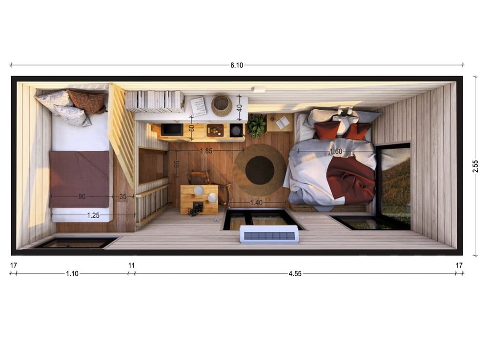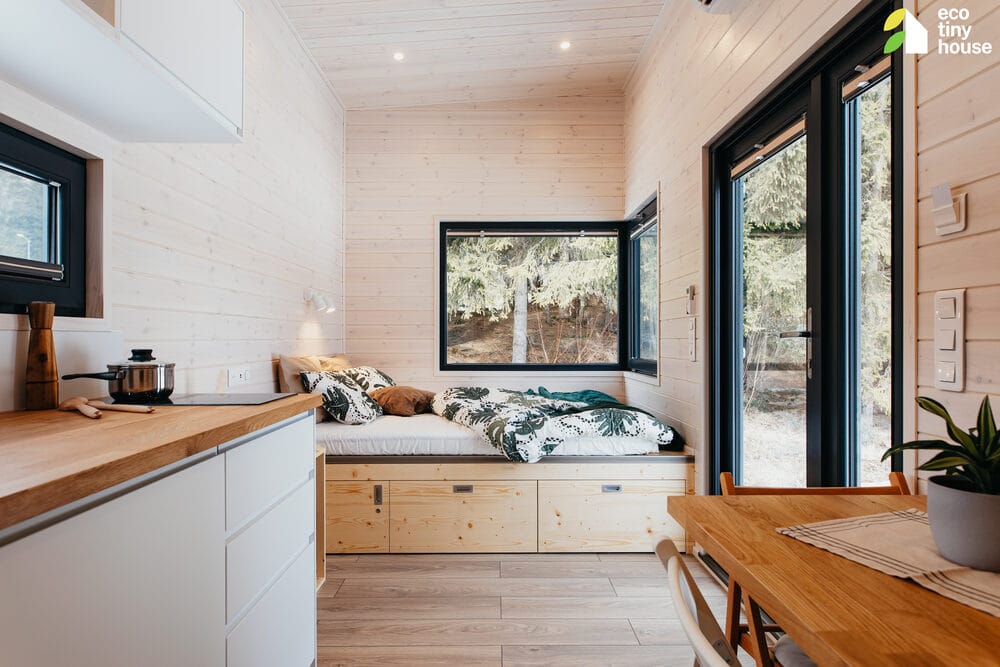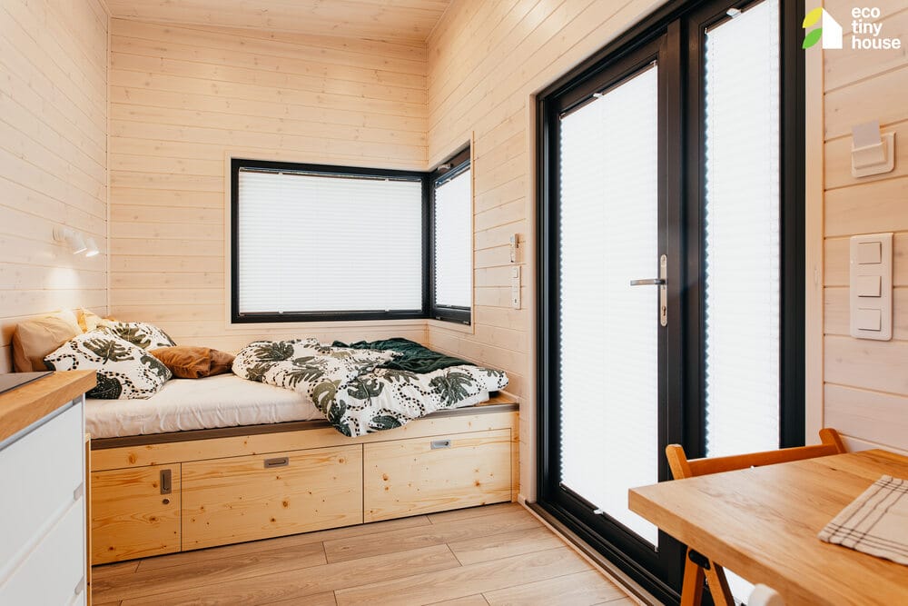 Tiny Rubik is a tiny house built by Eco Tiny House, a manufacturer based in Romania. This tiny house provides 16 m² of living space which can accommodate up to three people.