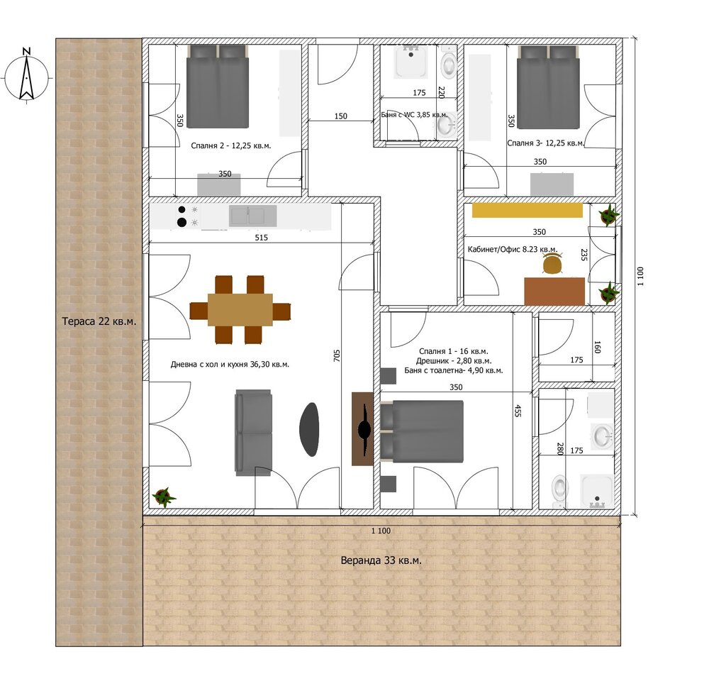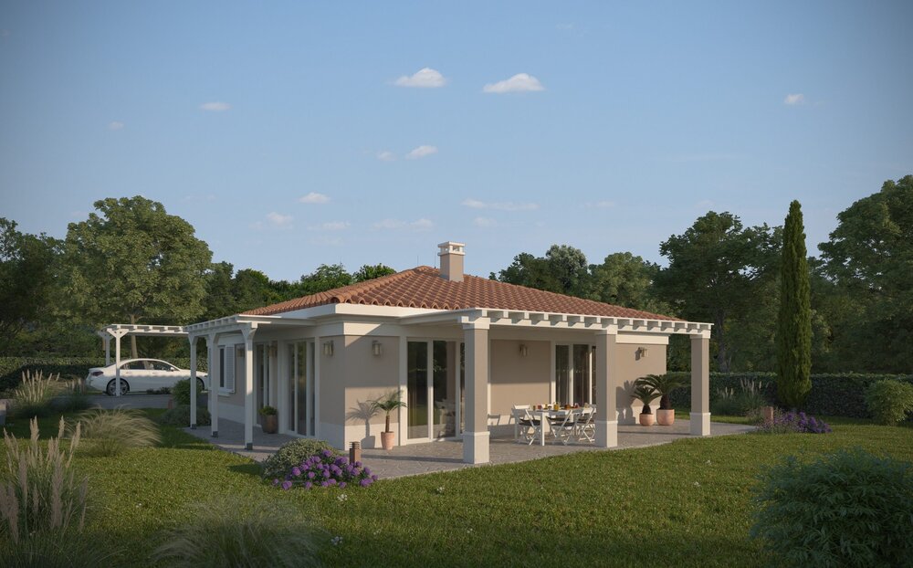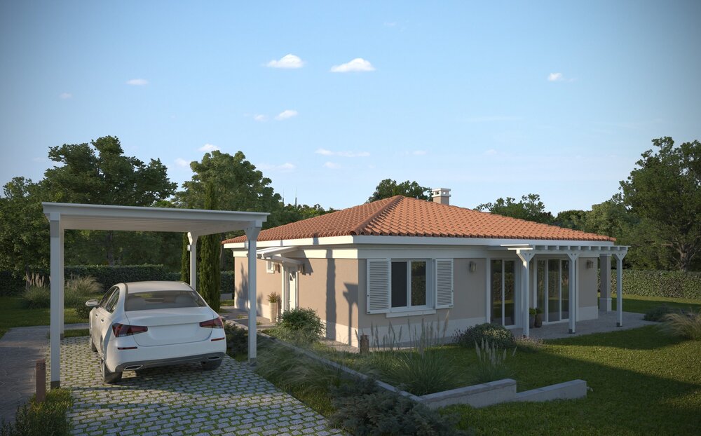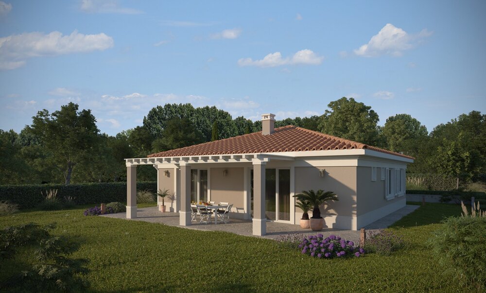 Mediteraneo is a prefab house built by House Factory 7, a prefab manufacturer based in Bulgaria. This prefab house provides 121 m2 of living space, with 3 bedrooms and 2 bathrooms.