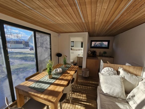 Cubie 96 is a modular home built by Hrovat, a manufacturer based in Slovenia. This prefab house provides 96 m² of living space, with two bedrooms and one bathroom.