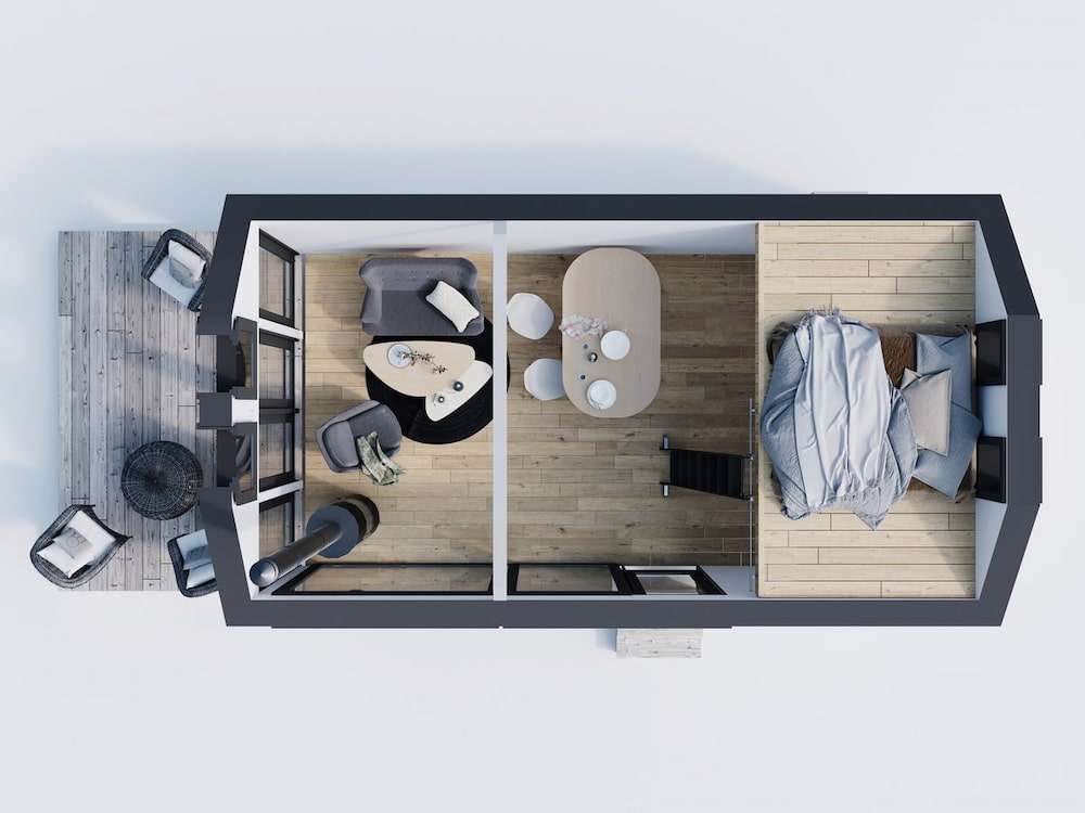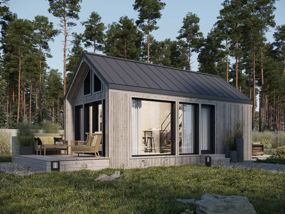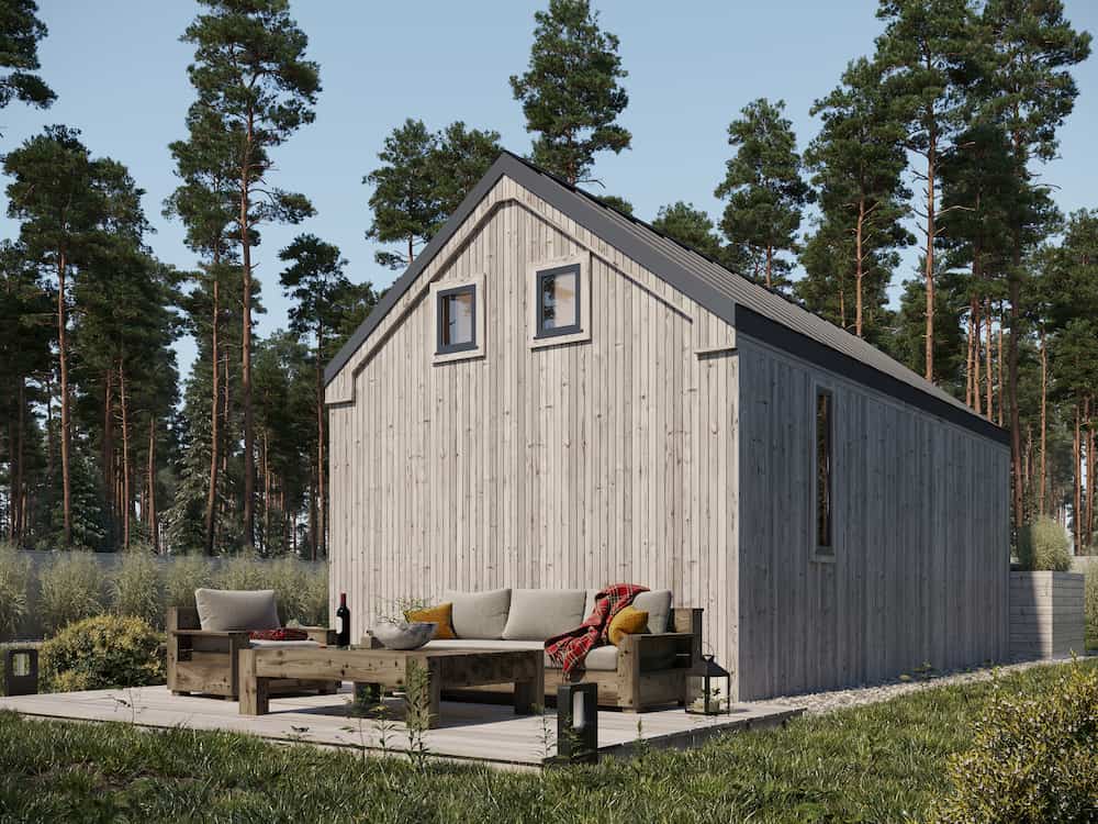 Nordic is a cabin built by IlumHouse, a prefab manufacturer based in Latvia. This cabin provides 28,02 m² of living space which can accommodate two people.