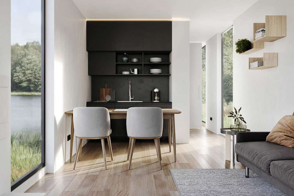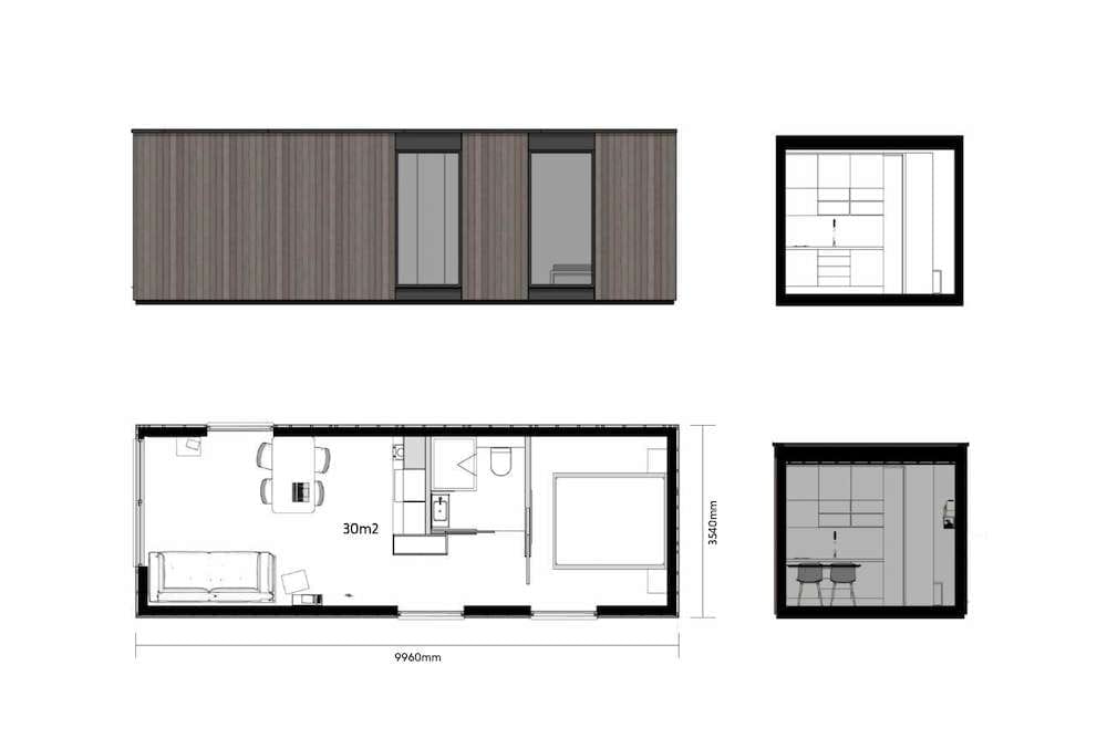 klein Large is a modular house built by kleinHAUS, a prefab manufacturer based in the Netherlands. This modular house provides 30 m² of living space with one bedroom and one bathroom.