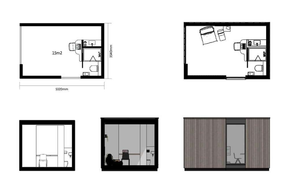 klein Small is a cabin built by kleinHAUS, a prefab manufacturer based in the Netherlands. This cabin provides 15 m² of living space which can accommodate two people.