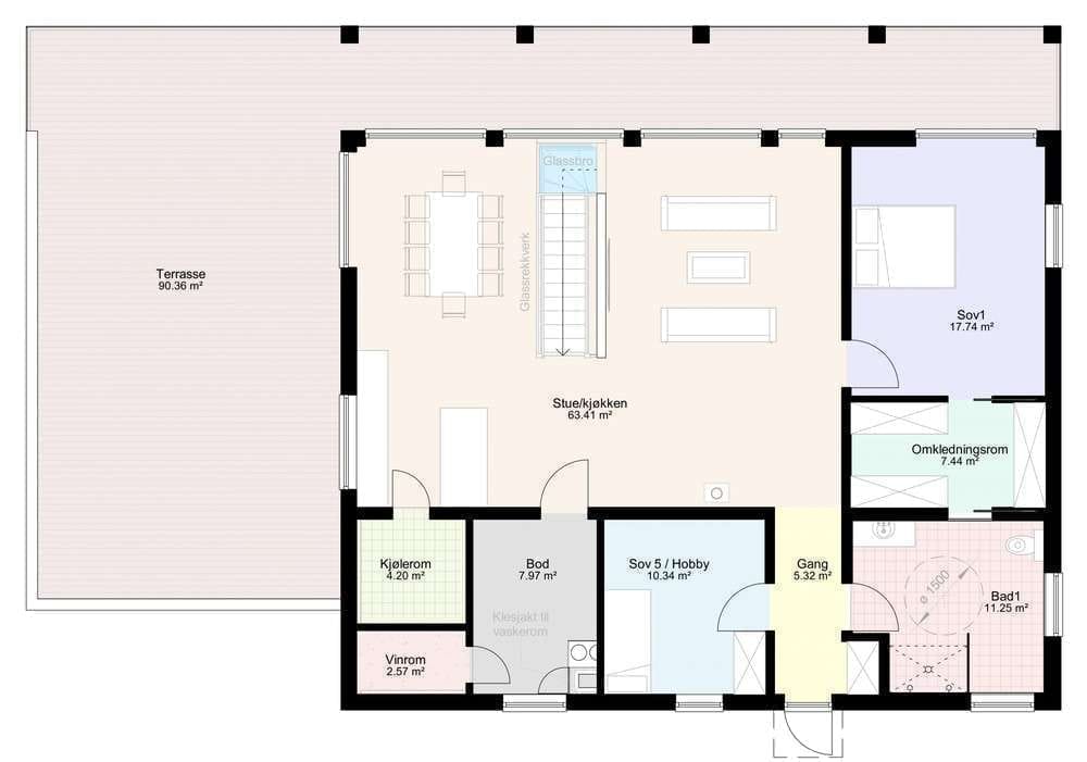 Logi 350 is a panel-built house built by Logi Prefab, a manufacturer based in Lithuania. This panel-built house provides 272.5 m² of living space over two floors, with five bedrooms and two bathrooms.