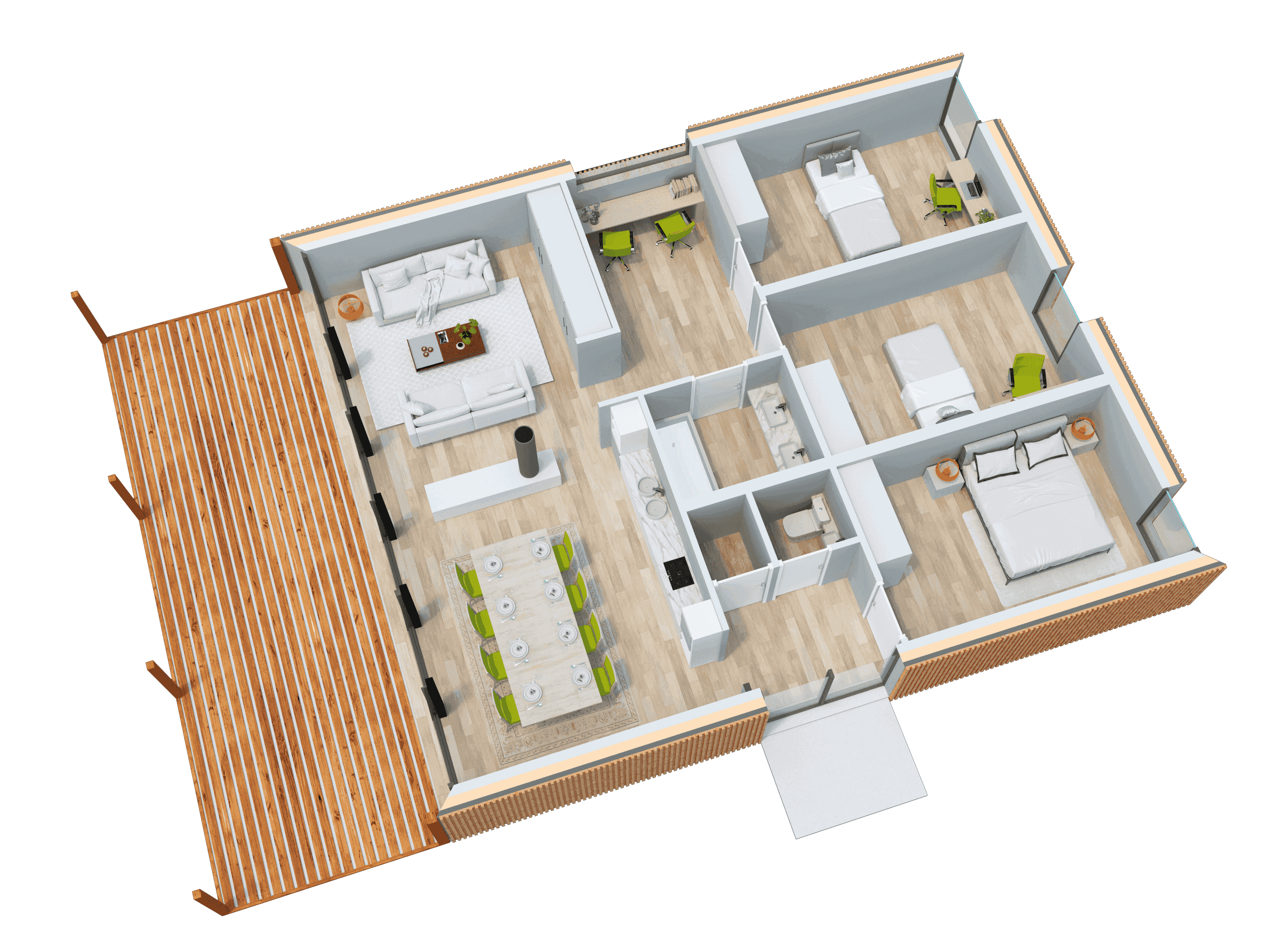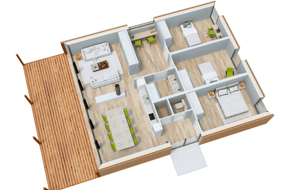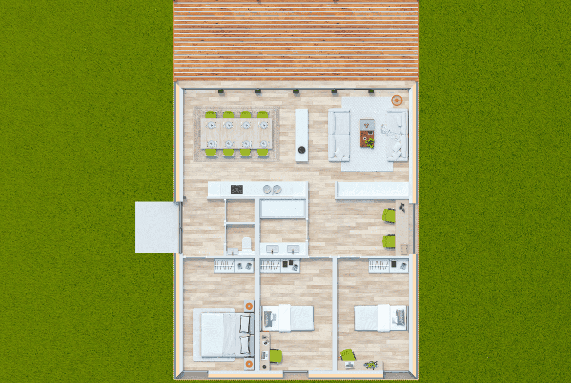 Eco A3 is a modular house built by McCube, a prefab manufacturer based in Austria. This modular house provides 90.17 m² of living space with three bedrooms and one bathroom.