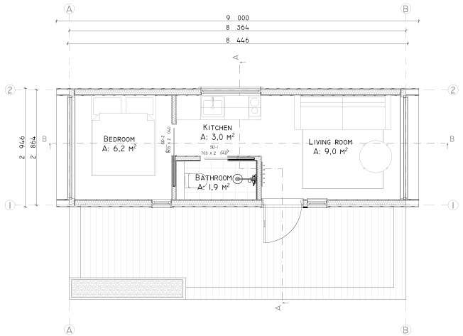 Type m²7 is a cabin built by Modern Modular, a prefab manufacturer based in Estonia. This cabin provides 27 m² of living space which can accommodate up to three people.