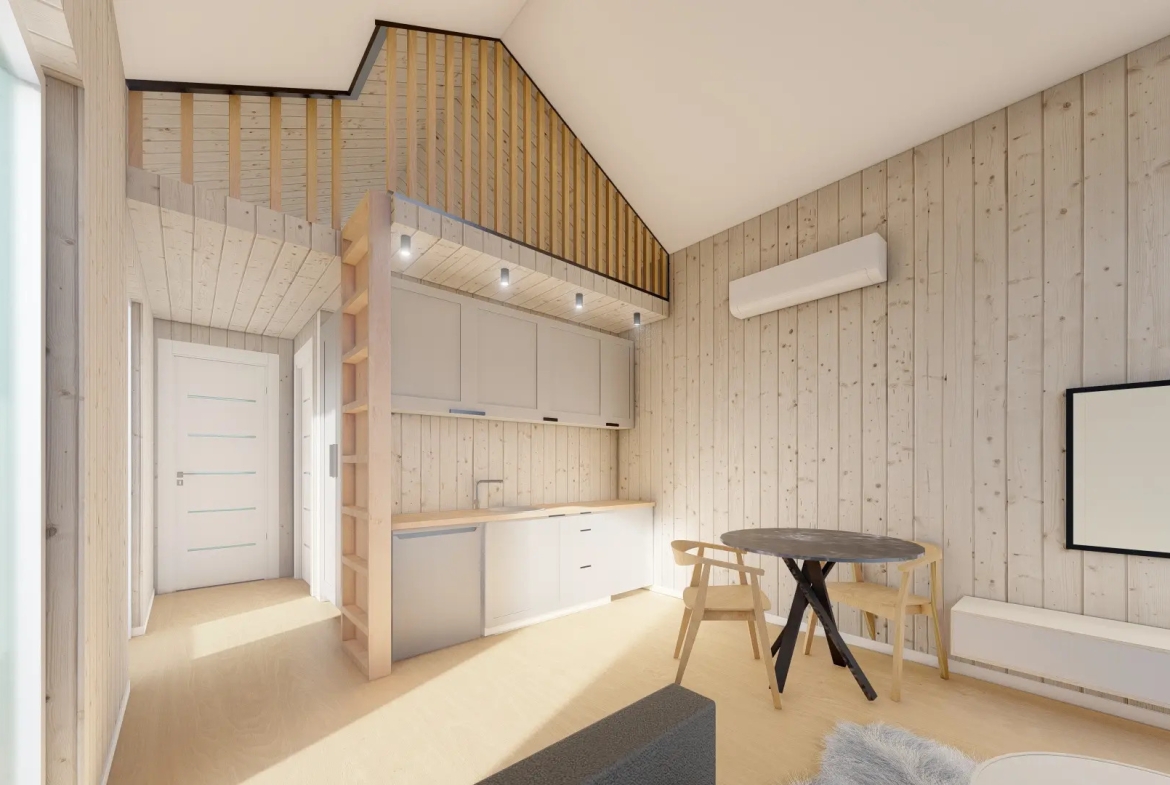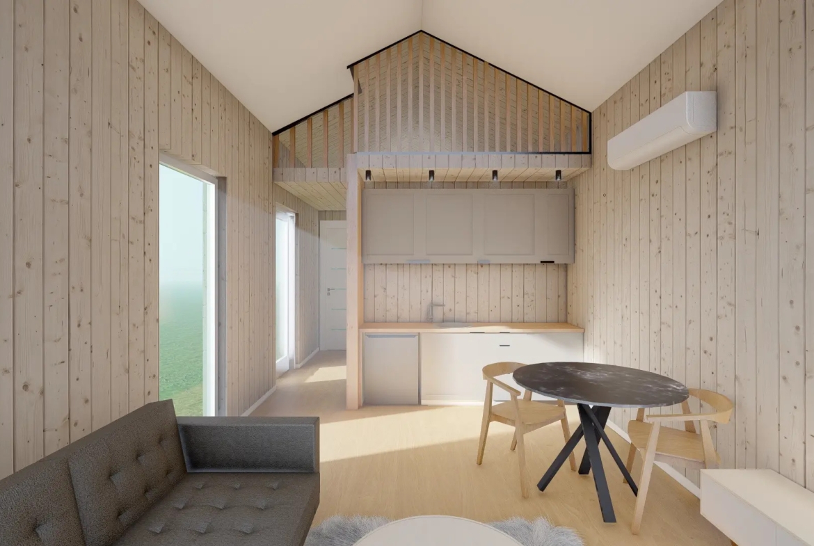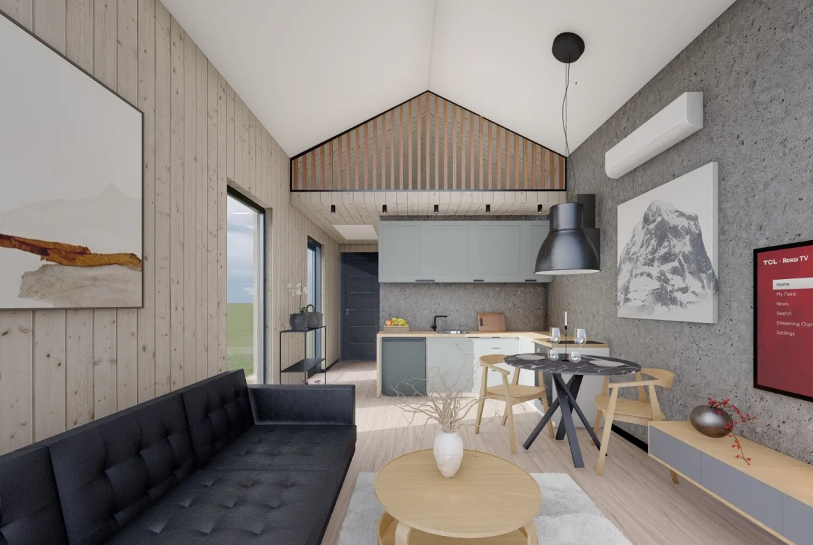 MOD 36 is a prefab house built by ModHouse, a prefab manufacturer based in Lithuania. This prefab house provides 36 m² of living space, with 1 bedroom and 1 bathroom.