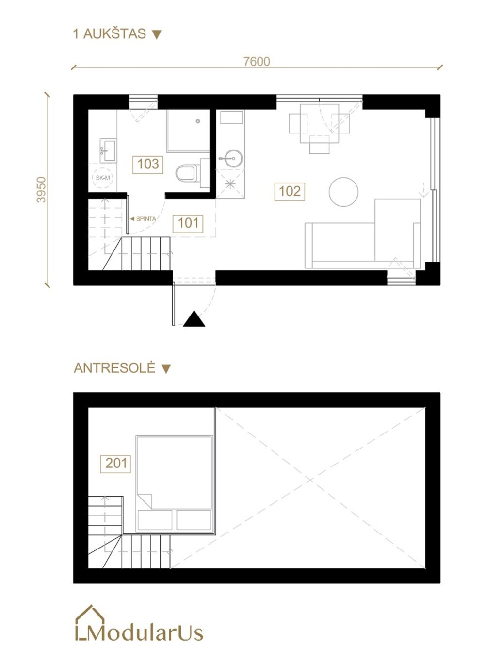 Eira is a modular prefab built by ModularUs, a prefab manufacturer based in Lithuania.