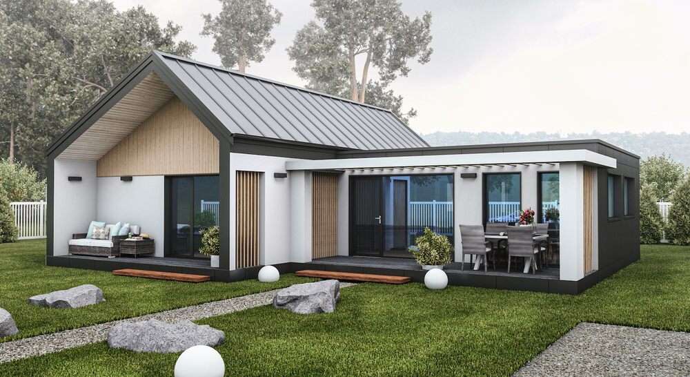Modulo 107 B is a prefab house built by Modulo House, a prefab manufacturer based in Romania. This house provides 107 m² of living space, with 3 bedrooms and 2 bathrooms.