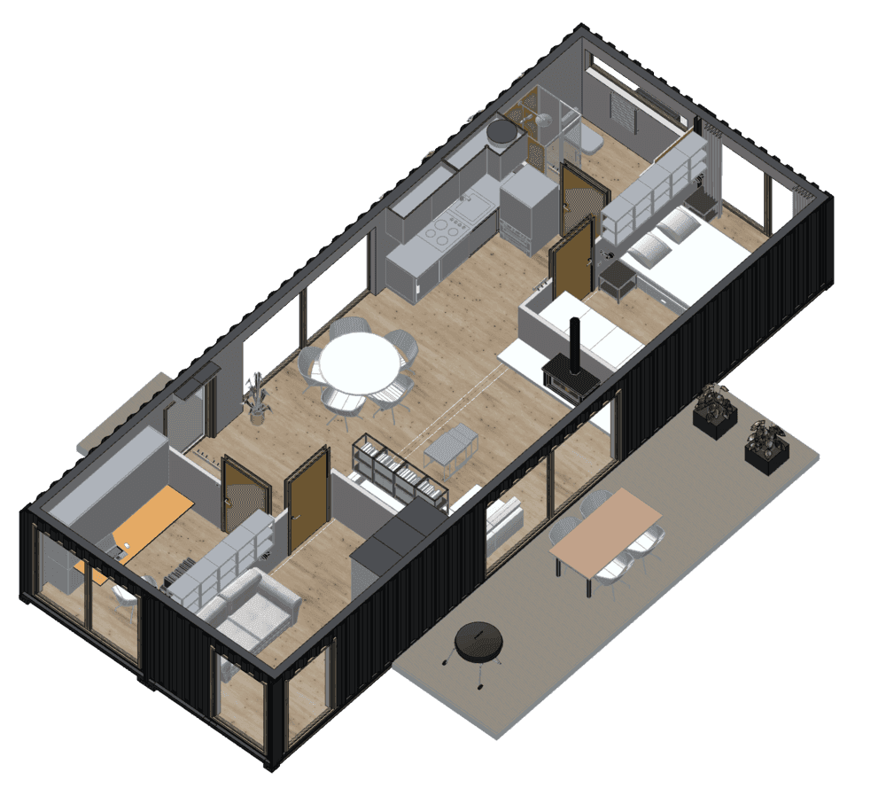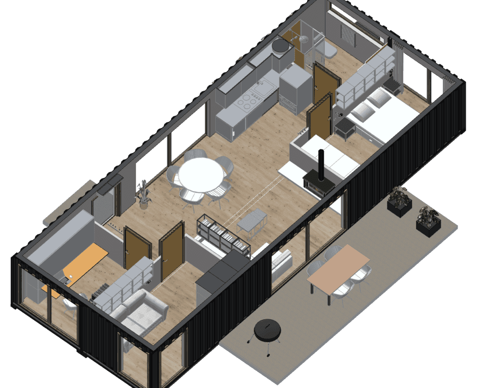MOMO Leo XL is a container house built by MOMO Development, a prefab manufacturer based in Sweden. This prefab house provides a living area of 56 m², with 3 bedrooms and 1 bathroom.