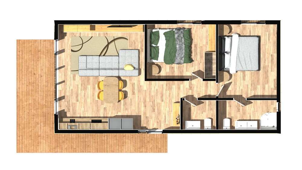 Nomad Loft+ is a modular house built by Nomad Container, a prefab manufacturer based in Romania. This modular house provides 72 m² of living space with two bedroom and two bathrooms.