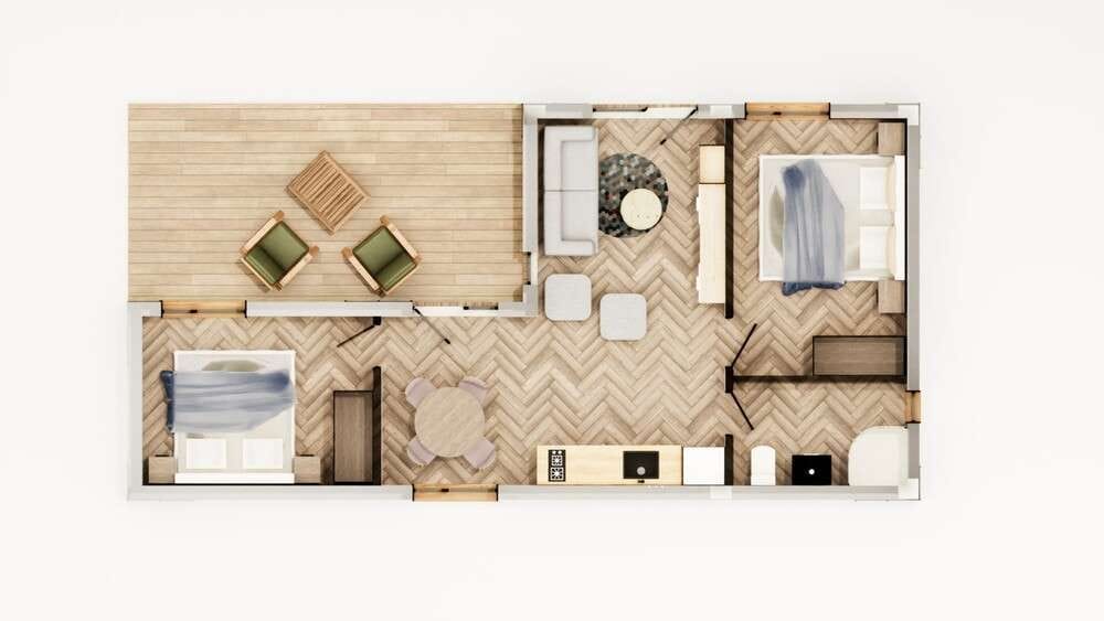 Nomad Loft is a modular house built by Nomad Container, a prefab manufacturer based in Romania. This modular house provides 54 m² of living space with two bedroom and one bathroom.