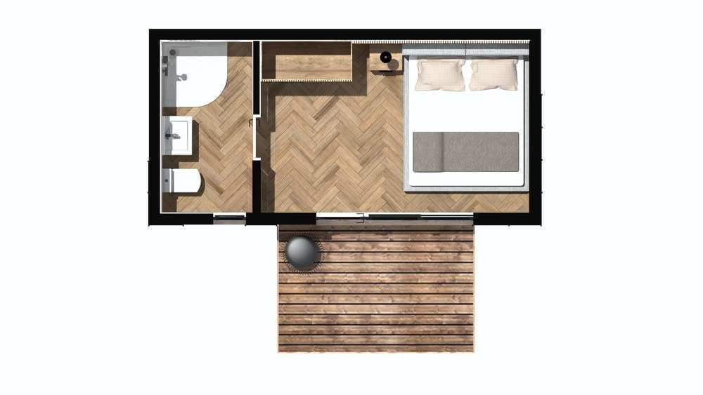 Nomad Studio is a cabin built by Nomad Container, a prefab manufacturer based in Romania. This cabin provides 18 m² of living space which can accommodate two people.