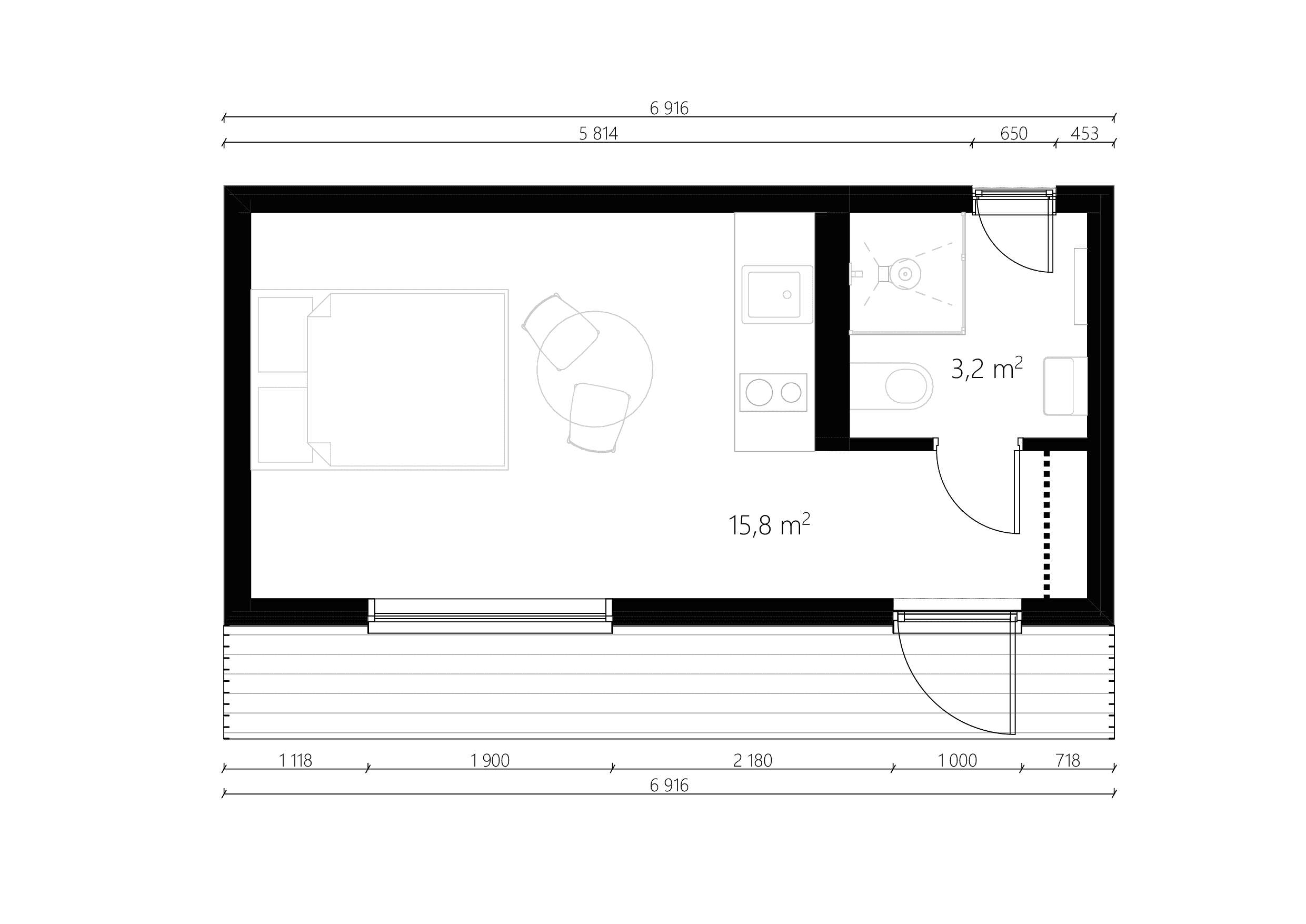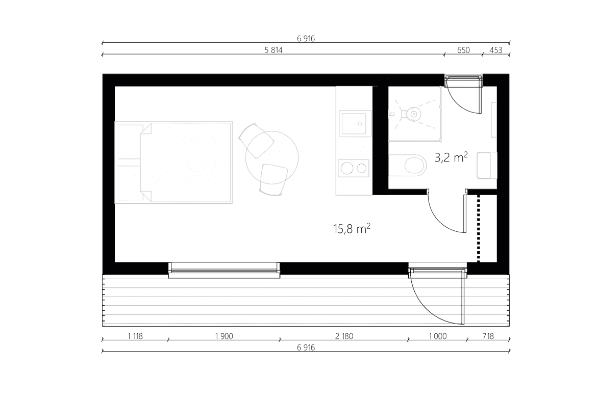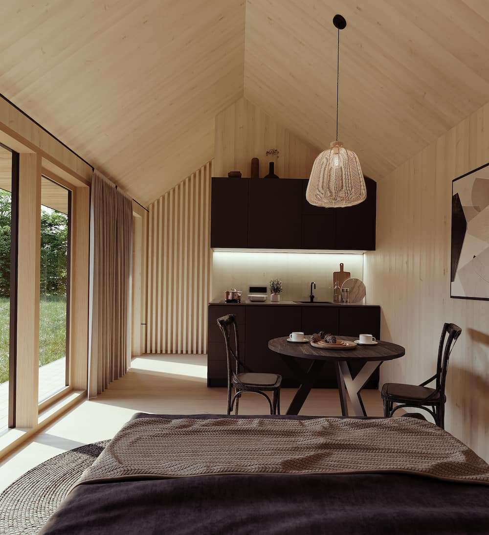 NC 20 is a modular house built by NordCabin, a prefab manufacturer based in Latvia. This modular house provides 19.2 m² of living space which can accommodate 2 people