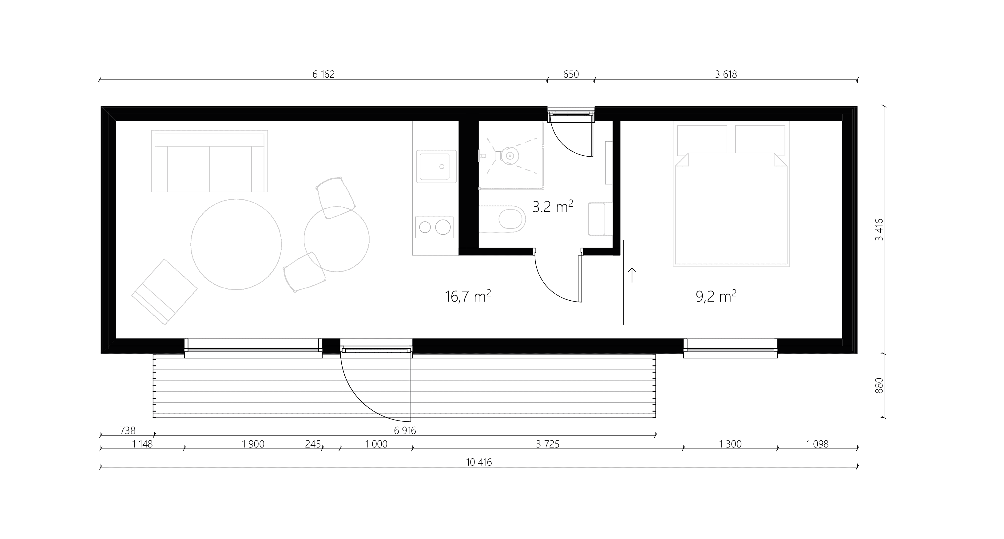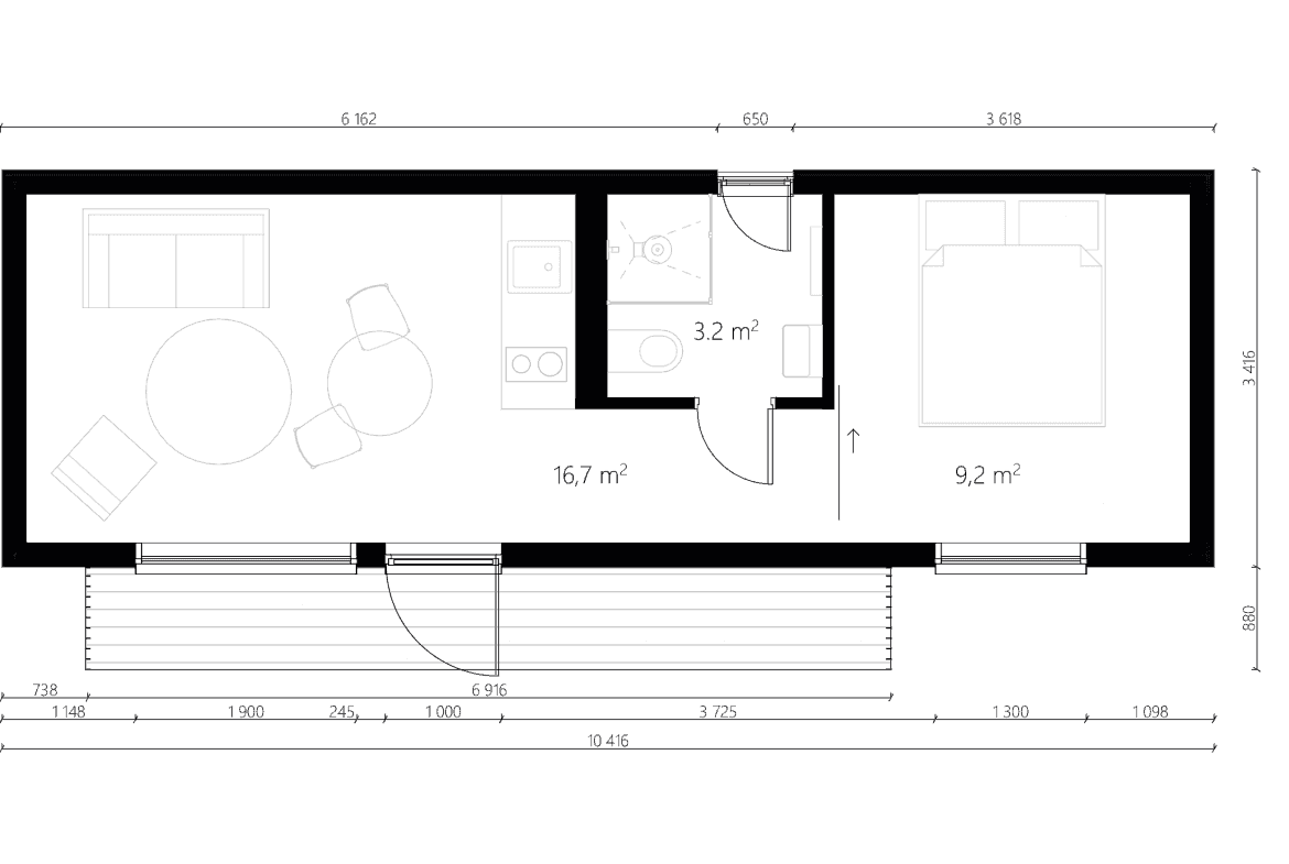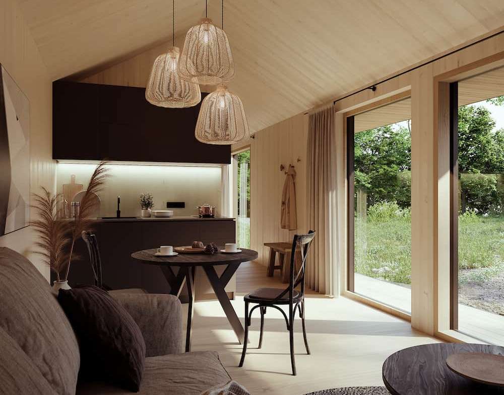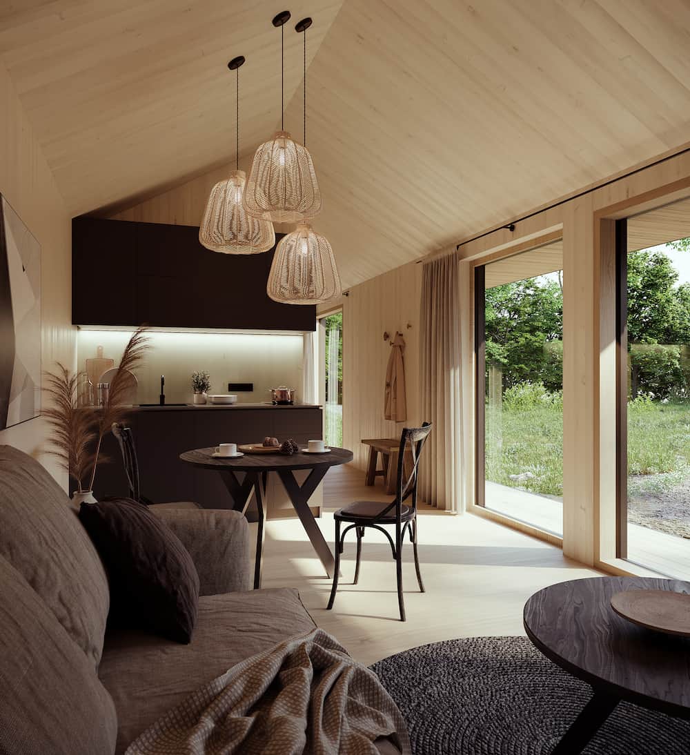 NC 30 is a modular house built by NordCabin, a prefab manufacturer based in Latvia. This modular house provides 29.5 m² of living space with one bedroom and one bathroom.