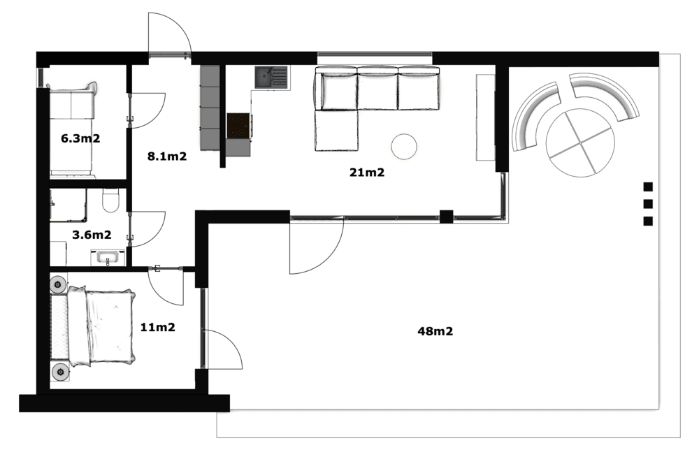 Nord 50L is a prefab house built by Nordroof, a prefab manufacturer based in Lithuania. This prefab house provides 50 m² of living space with 2 bedrooms and 1 bathroom.
