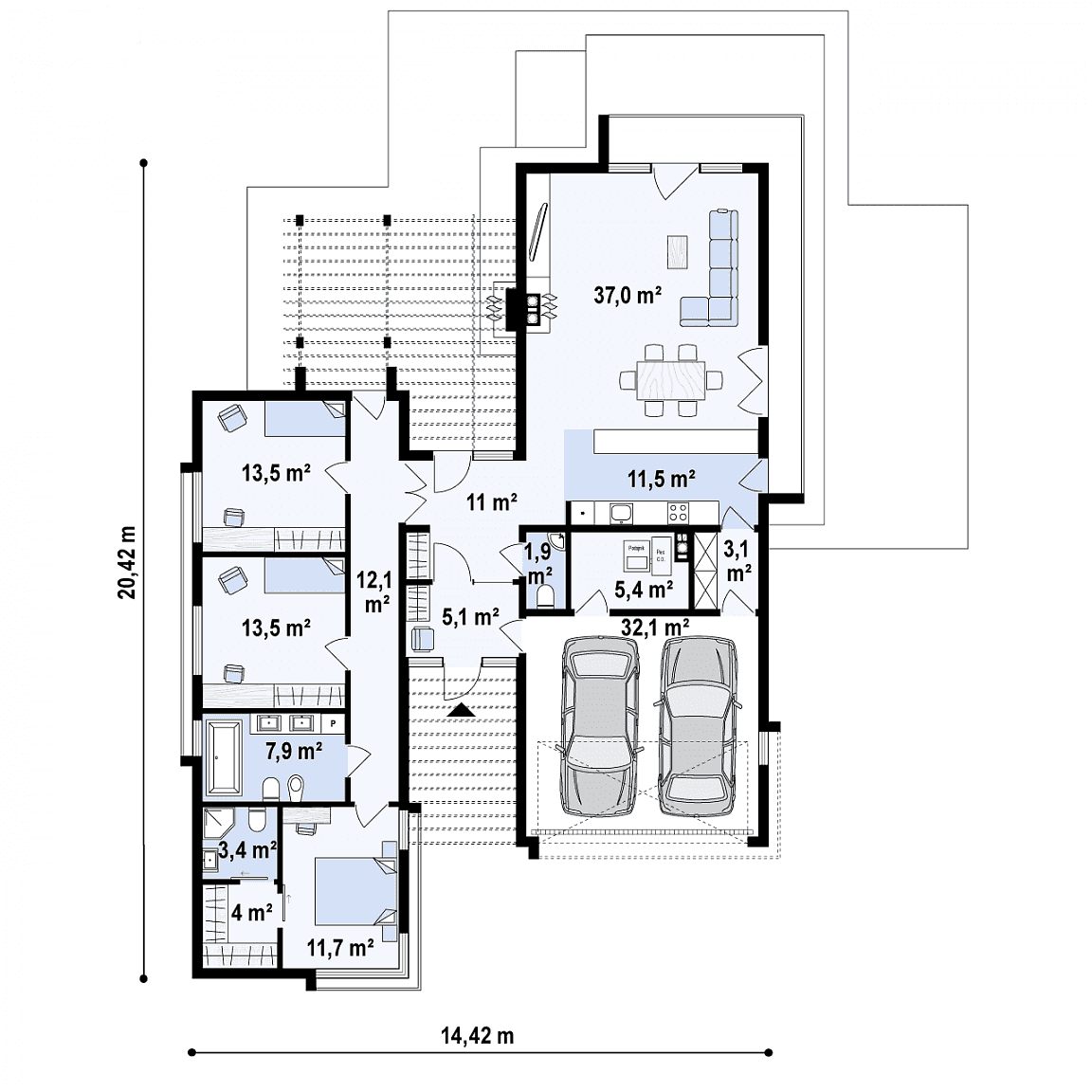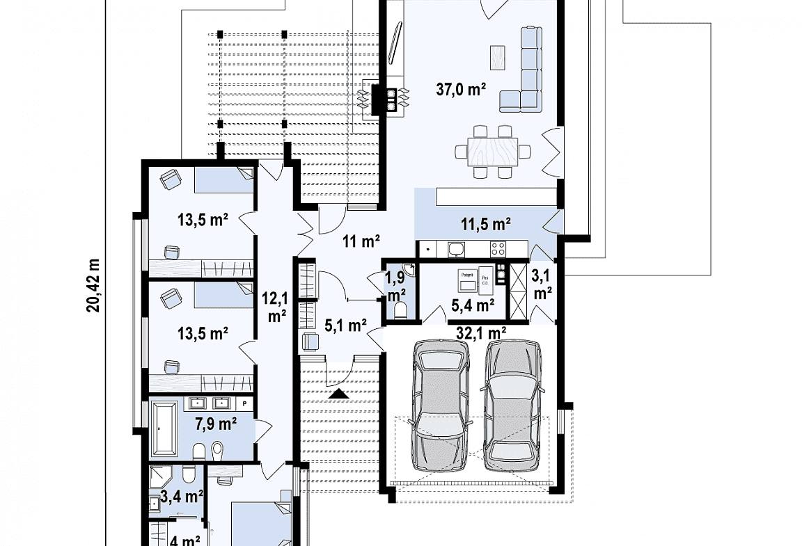 House 173 is a panel-built house built by Norge House, a prefab manufacturer based in Latvia. This panel-built house provides 135.6 m² of living space with three bedrooms and two bathrooms.