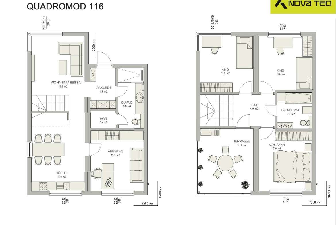 QUADROMOD 116 is a modular house built by NOVA TEQ, a prefab manufacturer based in Ukraine. This modular house provides 77 m² of living space, with three bedrooms and two bathrooms.