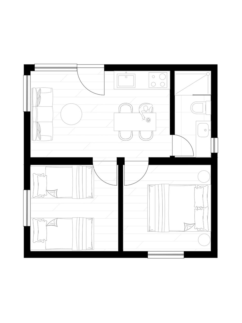 Twin House is a modular prefab built by Palladium Corporation, a prefab manufacturer based in Romania. This prefab house provides 37.7 m² of living space, with 3 bedrooms and 1 bathroom.