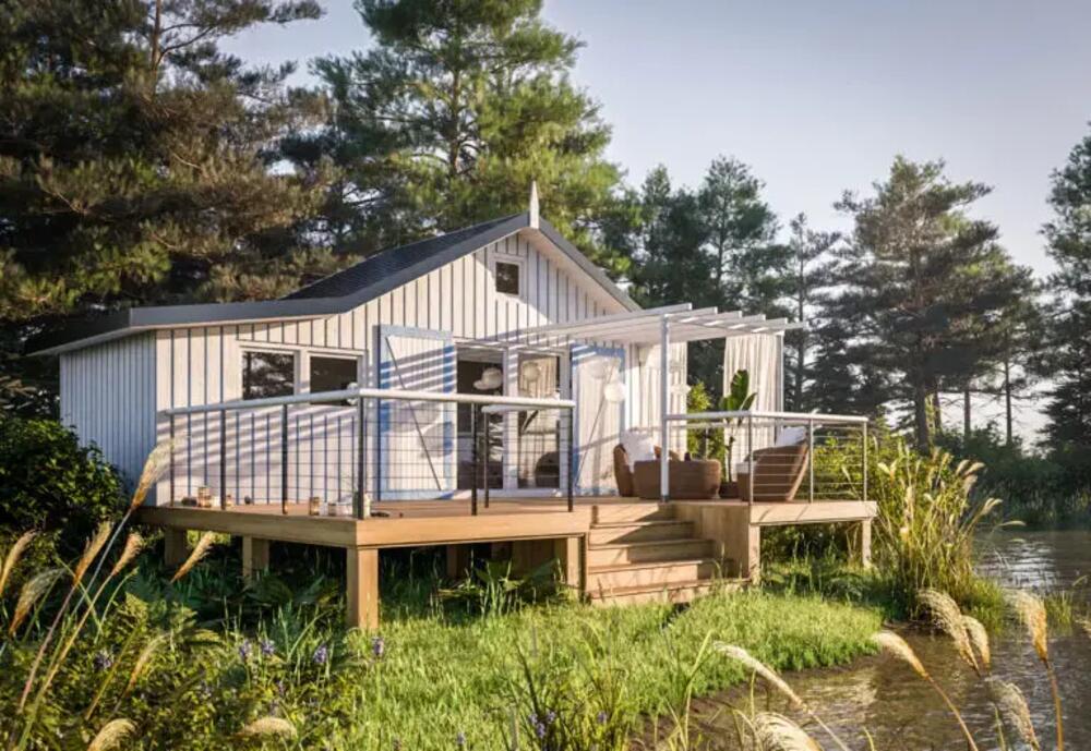 Le Cabanon Bleu is a modular cabin built by Quadrapol, a prefab manufacturer based in France. This cabin provides 24 m² of living space, which can accommodate 4 people.