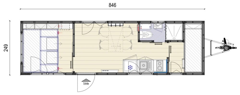 Kangourou is a tiny house built by Quadrapol, a prefab manufacturer based in France. This tiny house provides 18.9 m² of living space, with 2 bedrooms and 1 bathroom.