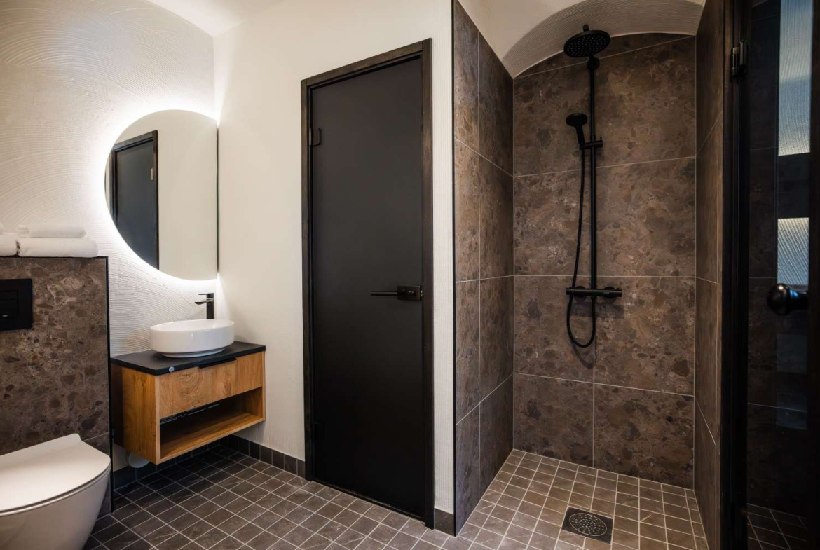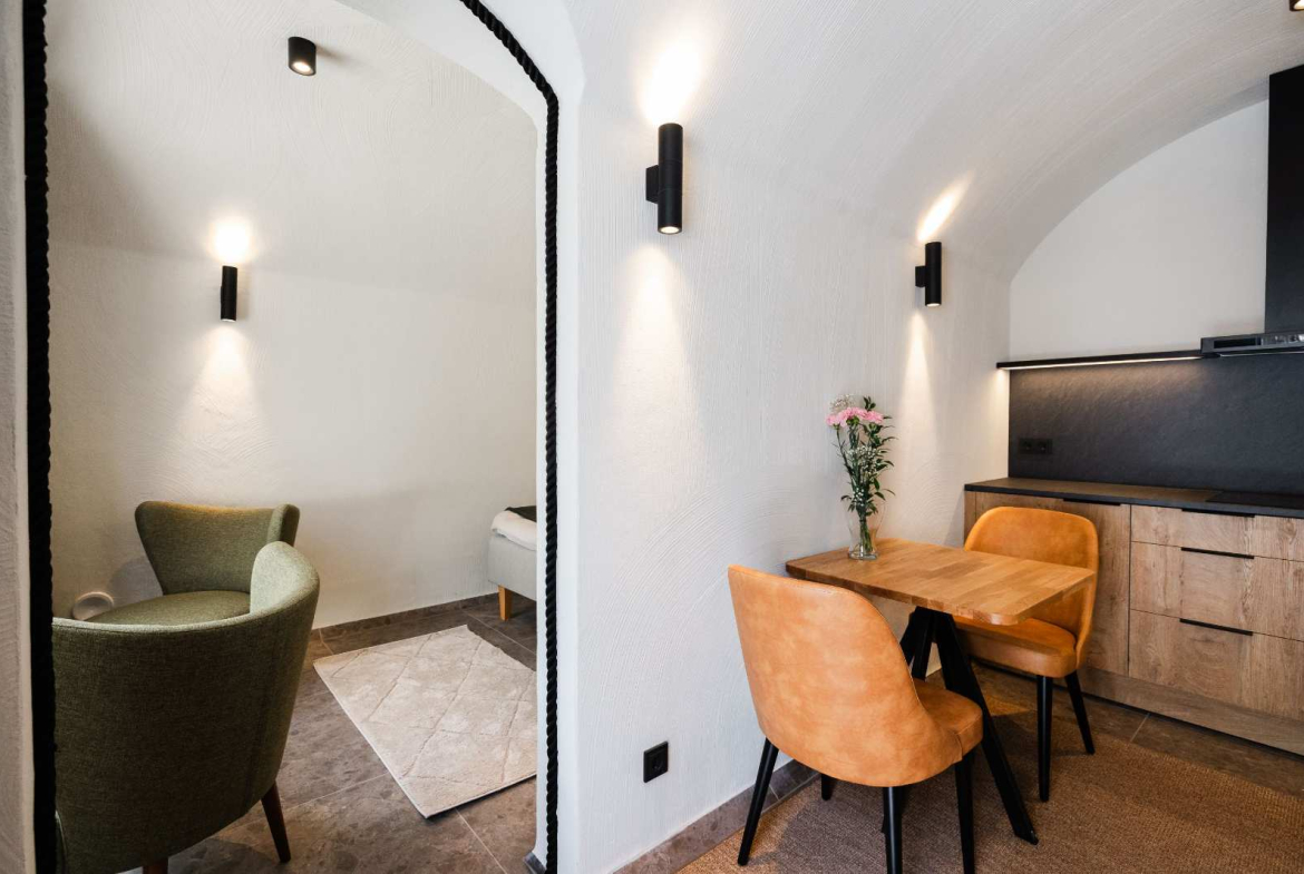 Healthy Atmosphere: The interior features lime plaster walls which naturally regulate humidity and prevent mold, ensuring a healthy, breathable indoor climate.