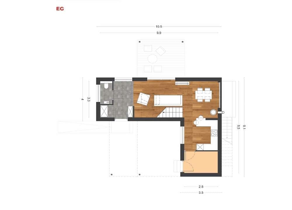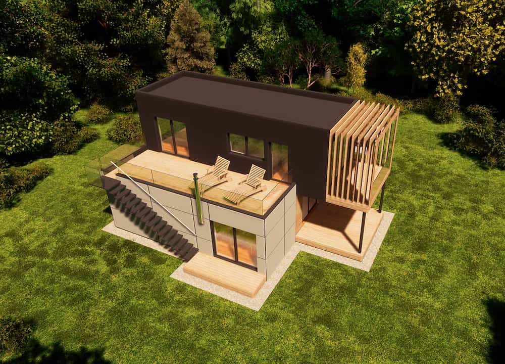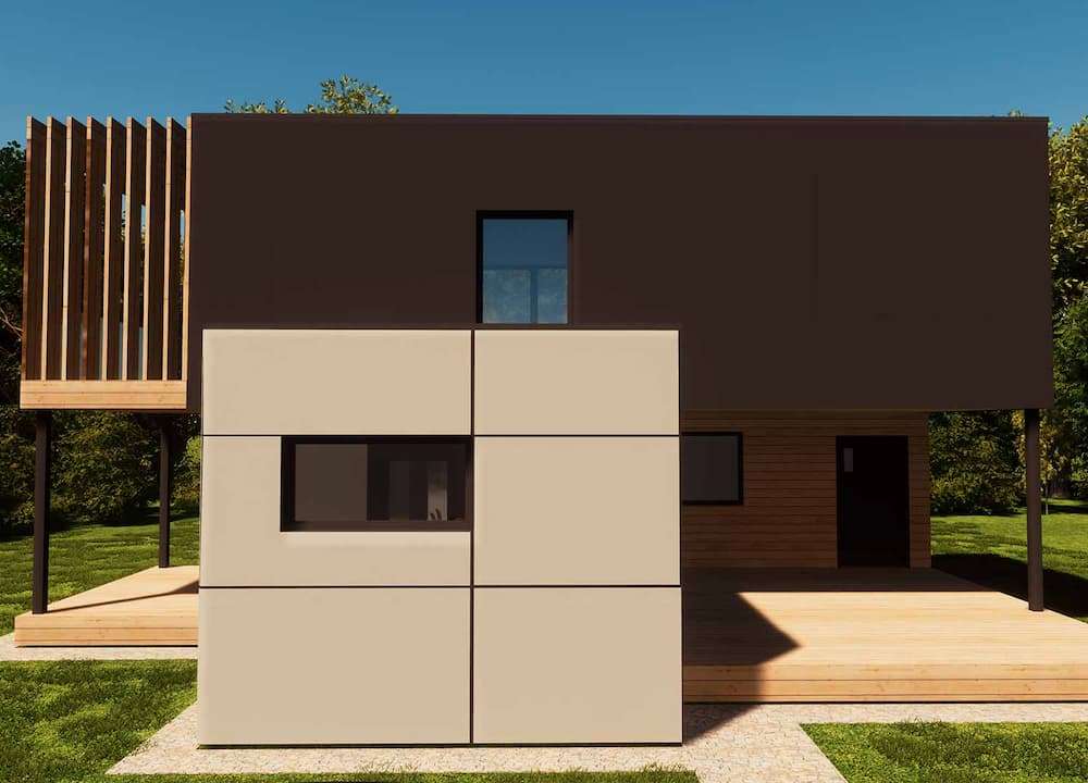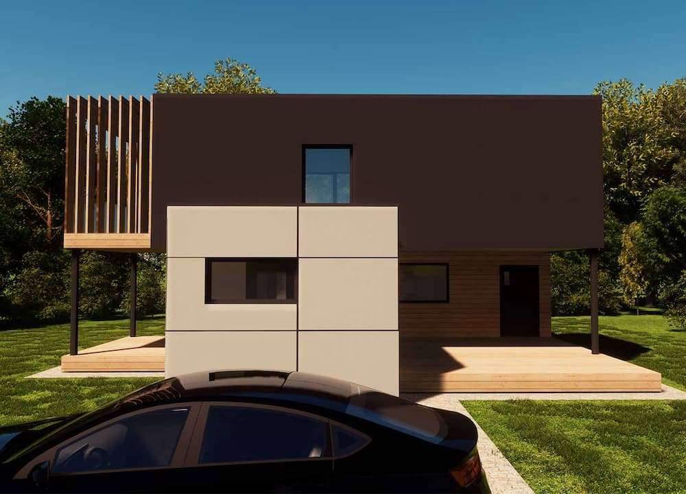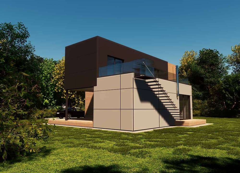 RMB Avantgarde 100 is a modular house built by RMB Modulbau, a prefab manufacturer based in Slovenia. This modular house provides 60.5 m² of living space over two floors, with two bedrooms and one bathroom.