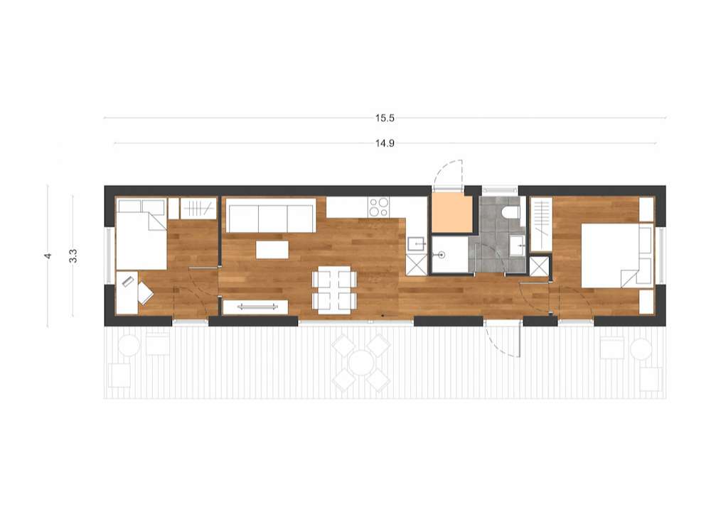 RMB Modul 60 is a modular house built by RMB Modulbau, a prefab manufacturer based in Slovenia. This modular house provides 49.8 m² of living space with two bedrooms and one bathroom.