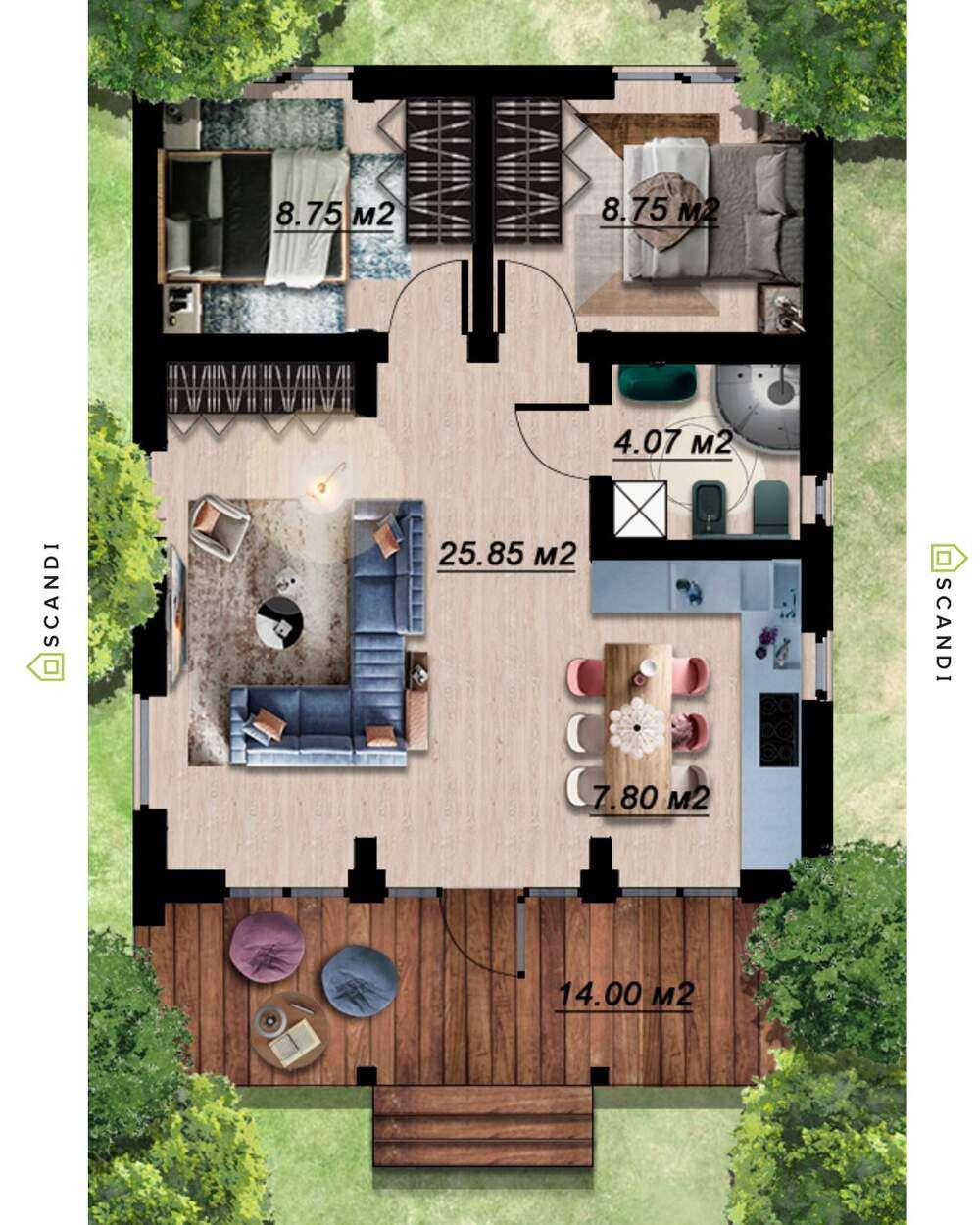 Scandi 4 is a modular house built by Scandi, a prefab manufacturer based in Germany. This modular house provides 82.5 m² of living space, with 2 bedrooms and 1 bathroom.