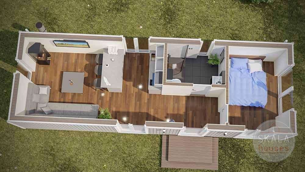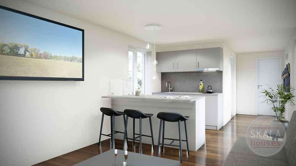 Lana is a modular house built by Skala Houses, a prefab manufacturer based in Latvia. This prefab house provides 48 m² of living space, with 2 bedrooms and 1 bathroom.