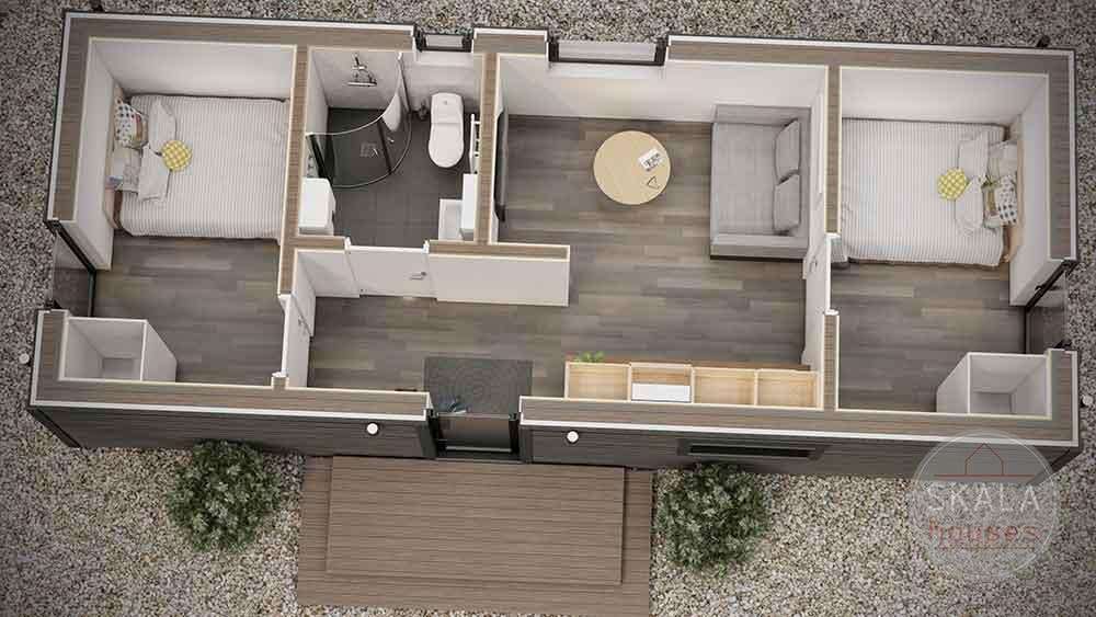 Silciems is a modular house built by Skala Houses, a prefab manufacturer based in Latvia. This prefab house provides 36 m² of living space, with 2 bedrooms and 1 bathroom.