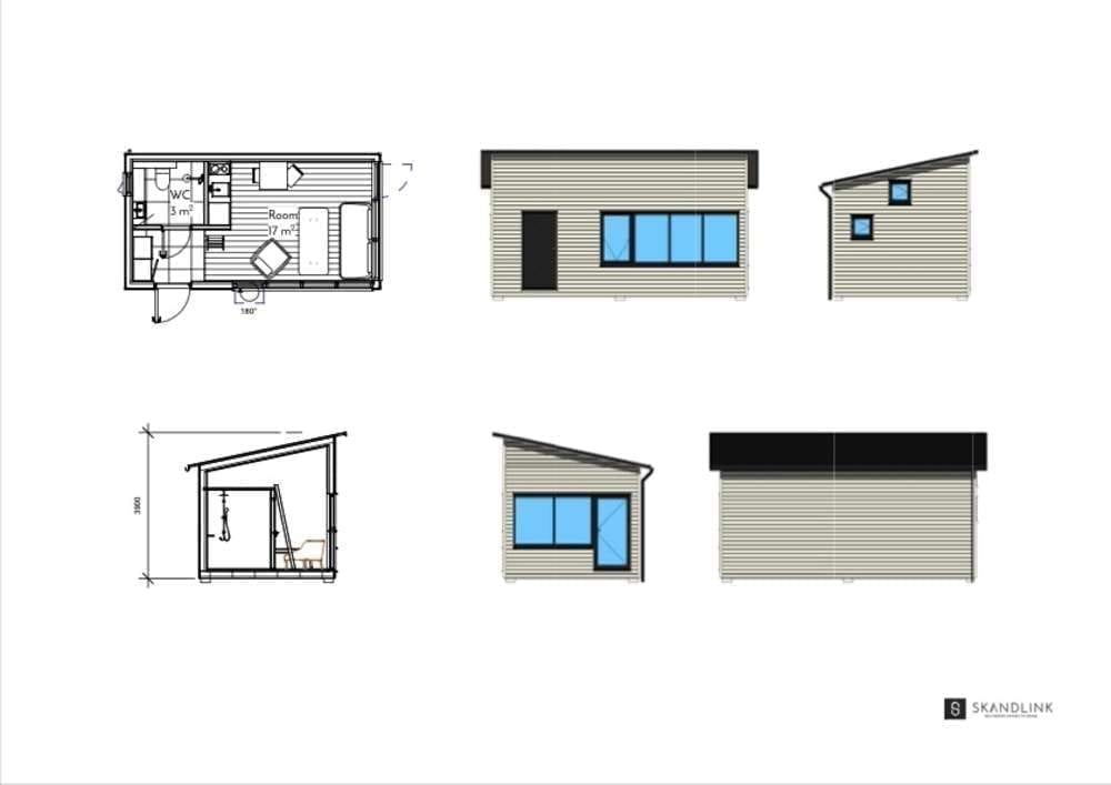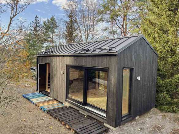 Riket P-25 is a modular cabin built by Skandlink, a prefab manufacturer based in Latvia. This modular cabin provides 25 m² of living space which can accommodate two people.