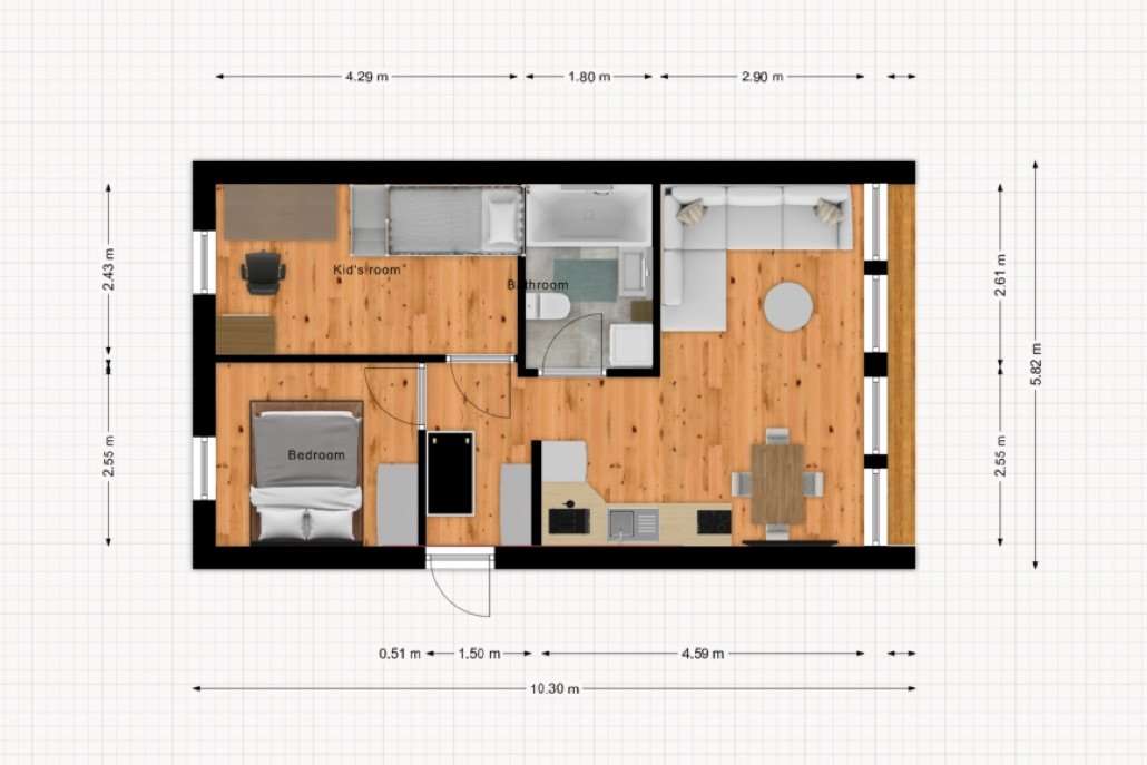 60m² House is a modular house built by Spars AP, a prefab manufacturer based in Latvia. This modular house provides 60 m² of living space with two bedrooms and one bathroom.