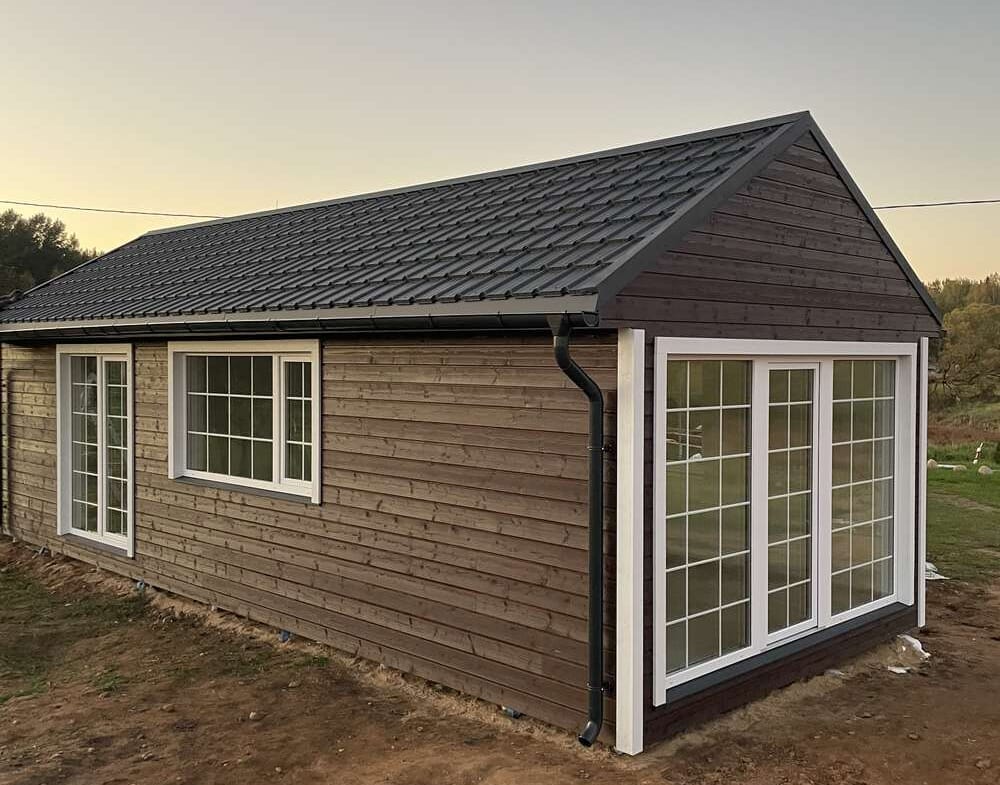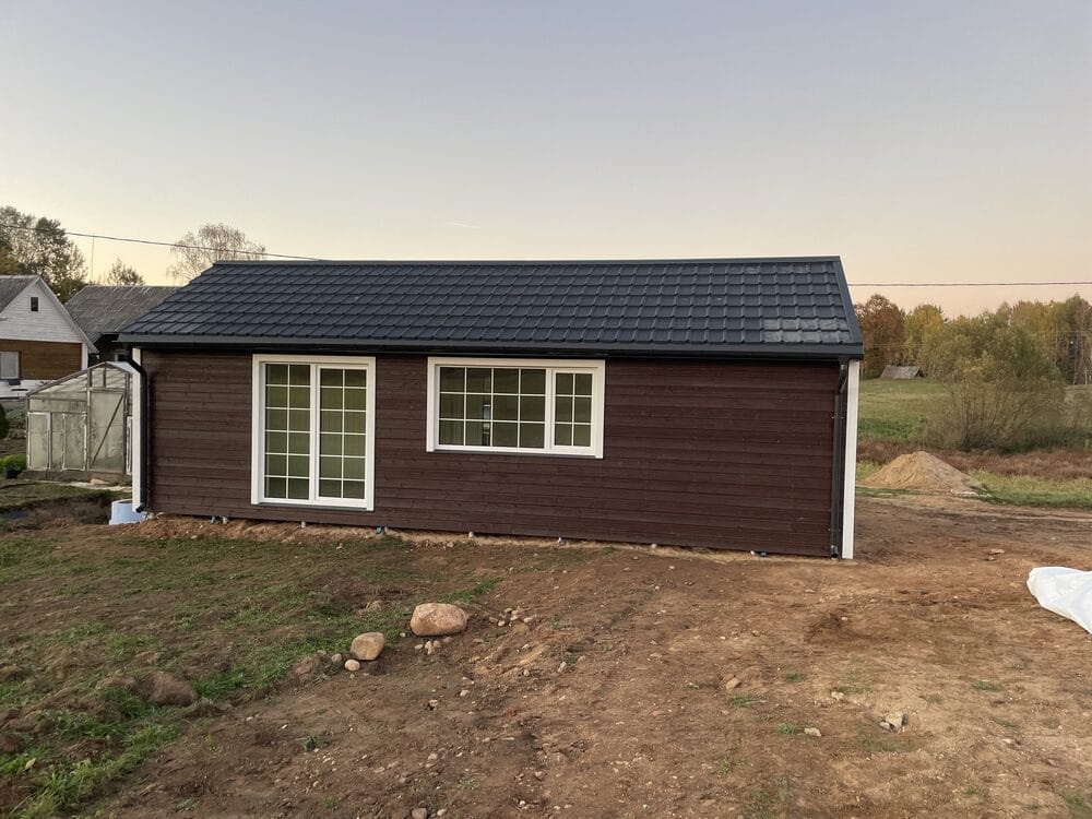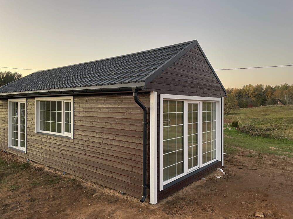 Pusis is a prefab built by Sustainable House, a prefab manufacturer based in Latvia. This prefab house provides 40 m² of living space with 1 bedroom and 1 bathroom.
