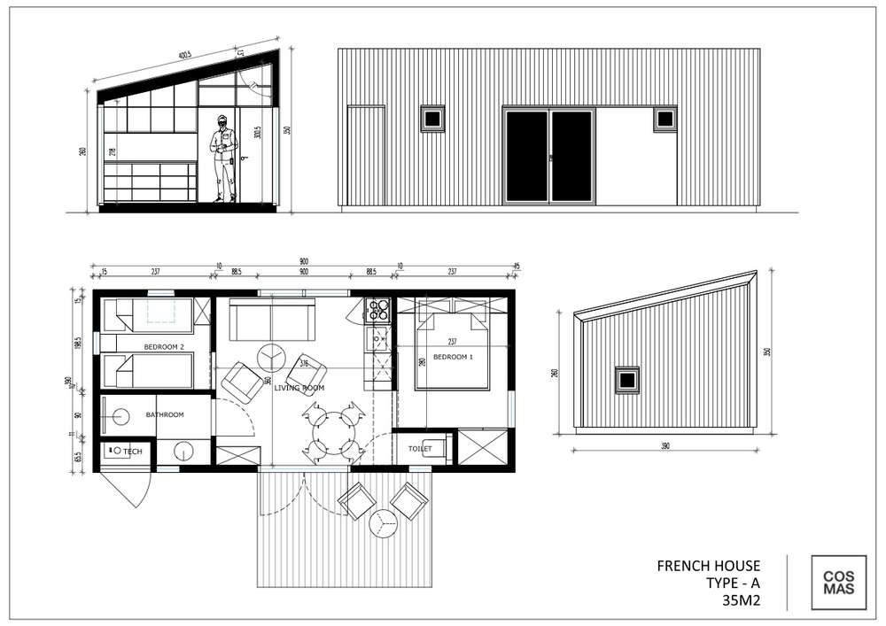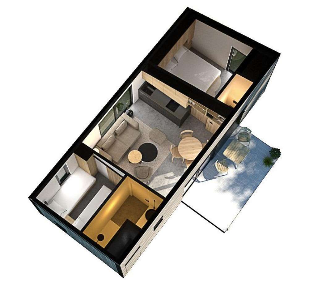 Leisure Lodge 35m² is a modular house built by Tiny House World, a prefab manufacturer based in the Netherlands. This prefab house provides 35 m² of living space, with 2 bedrooms and 1 bathroom.For further information, please check the technical description below.