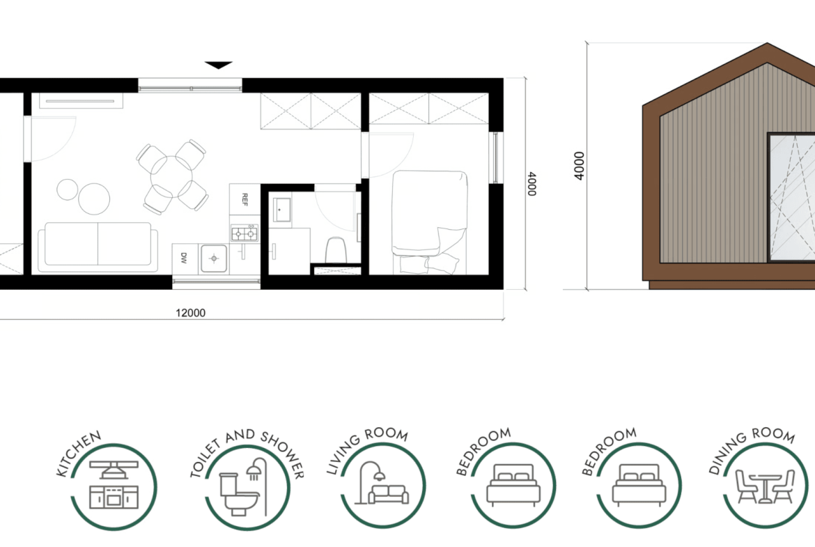 TH48 is a modular cabin built by tutumHOUSE, a prefab manufacturer based in Lithuania. This cabin provides 48 m2 of living space, with one bedroom and one bathroom.
