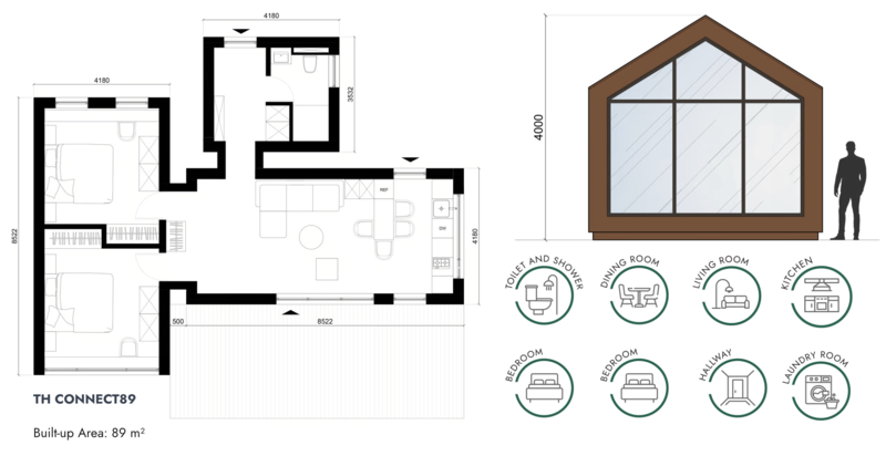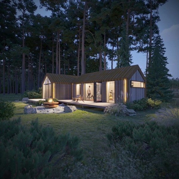 TH89 is a modular cabin built by tutumHOUSE, a prefab manufacturer based in Lithuania. This cabin provides 89 m2 of living space, with two bedrooms and one bathroom.