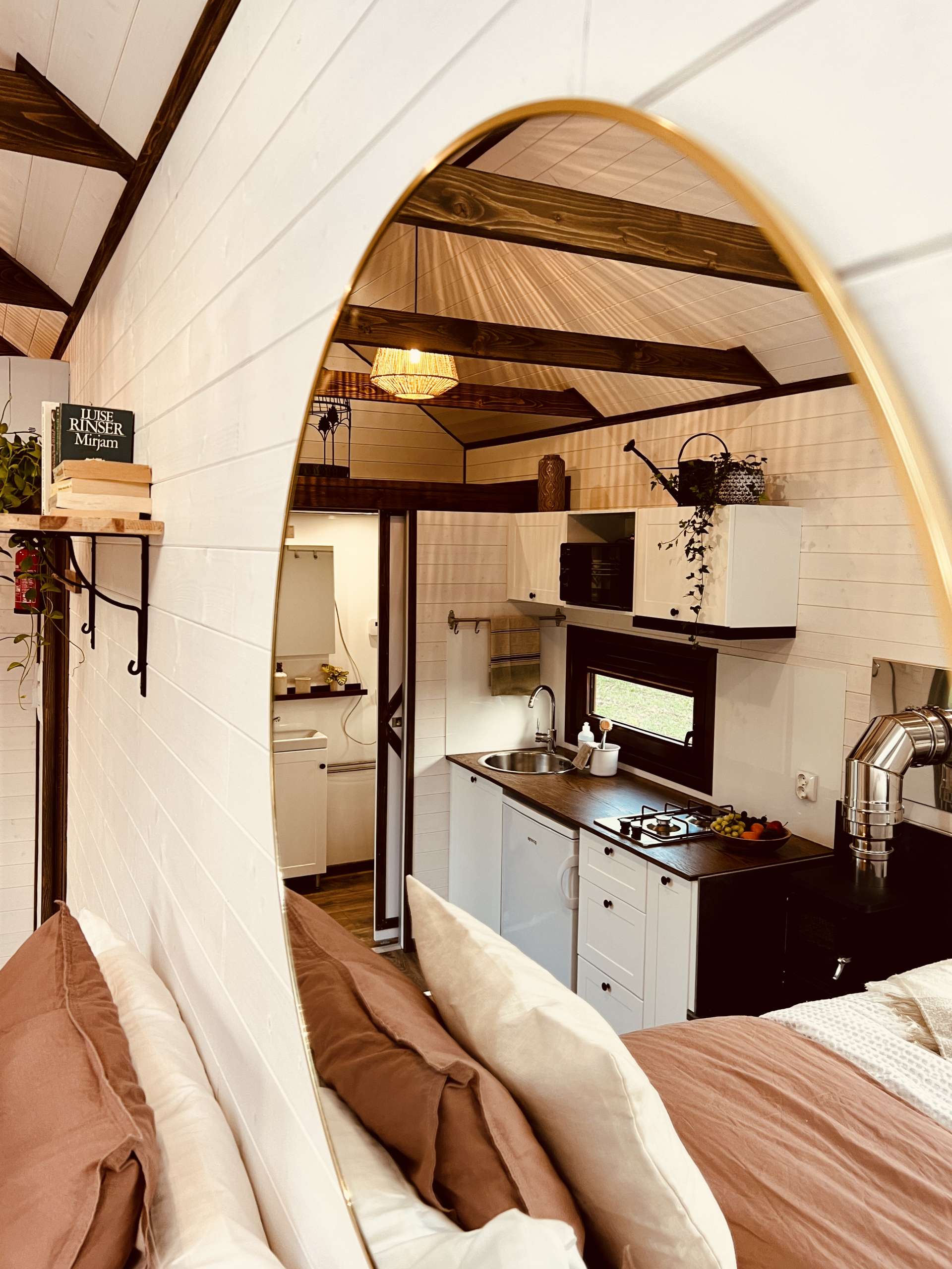 Sofia is a tiny house sold by Vagabond Haven, a manufacturer based in Sweden. This tiny house provides 16 m² of living space which can accommodate two people.