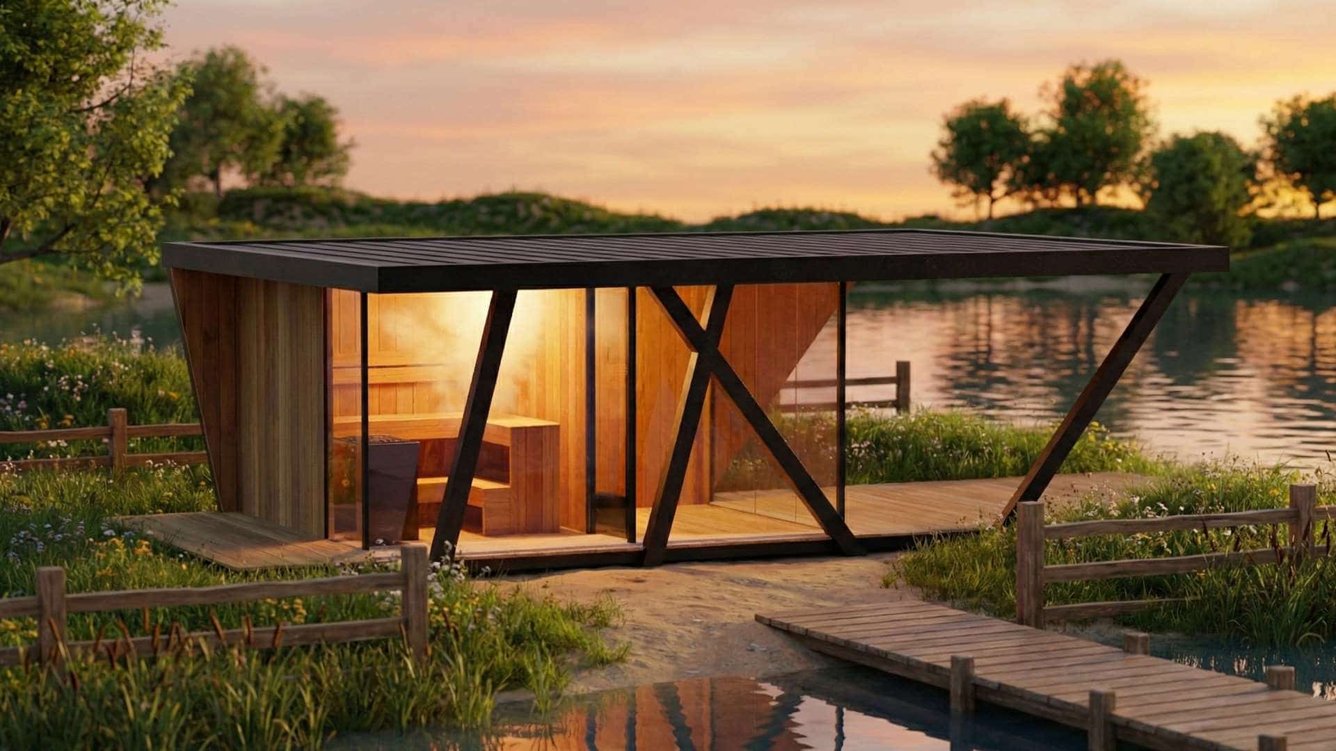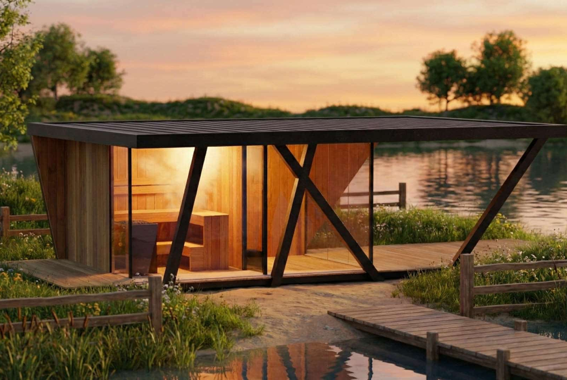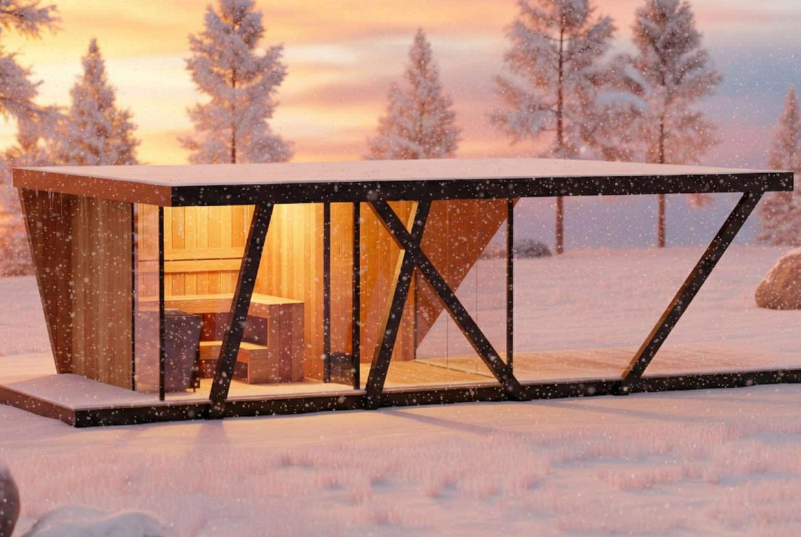 Vilsandi Pandora is a contemporary and well-designed sauna house that combines open planning with a high-quality wooden structure. Large glass surfaces bring more natural light into the sauna and create a pleasant atmosphere. The sliding glass panels on the side terrace allow you to open the front area instantly, transforming the space into a larger and unified area. The interior layout is practical: the wall between the steam room and the changing room can be adjusted according to your needs. This allows you to shape the room exactly the way you prefer.