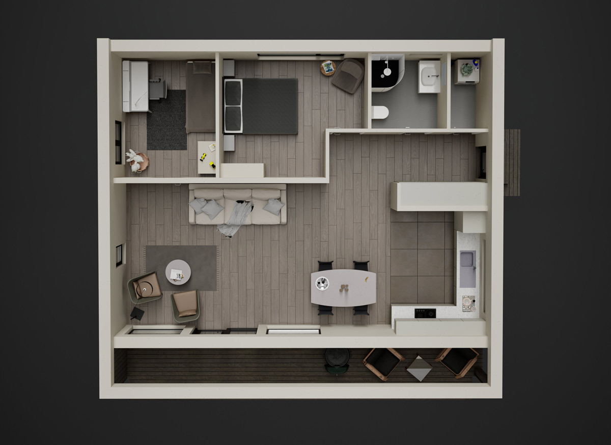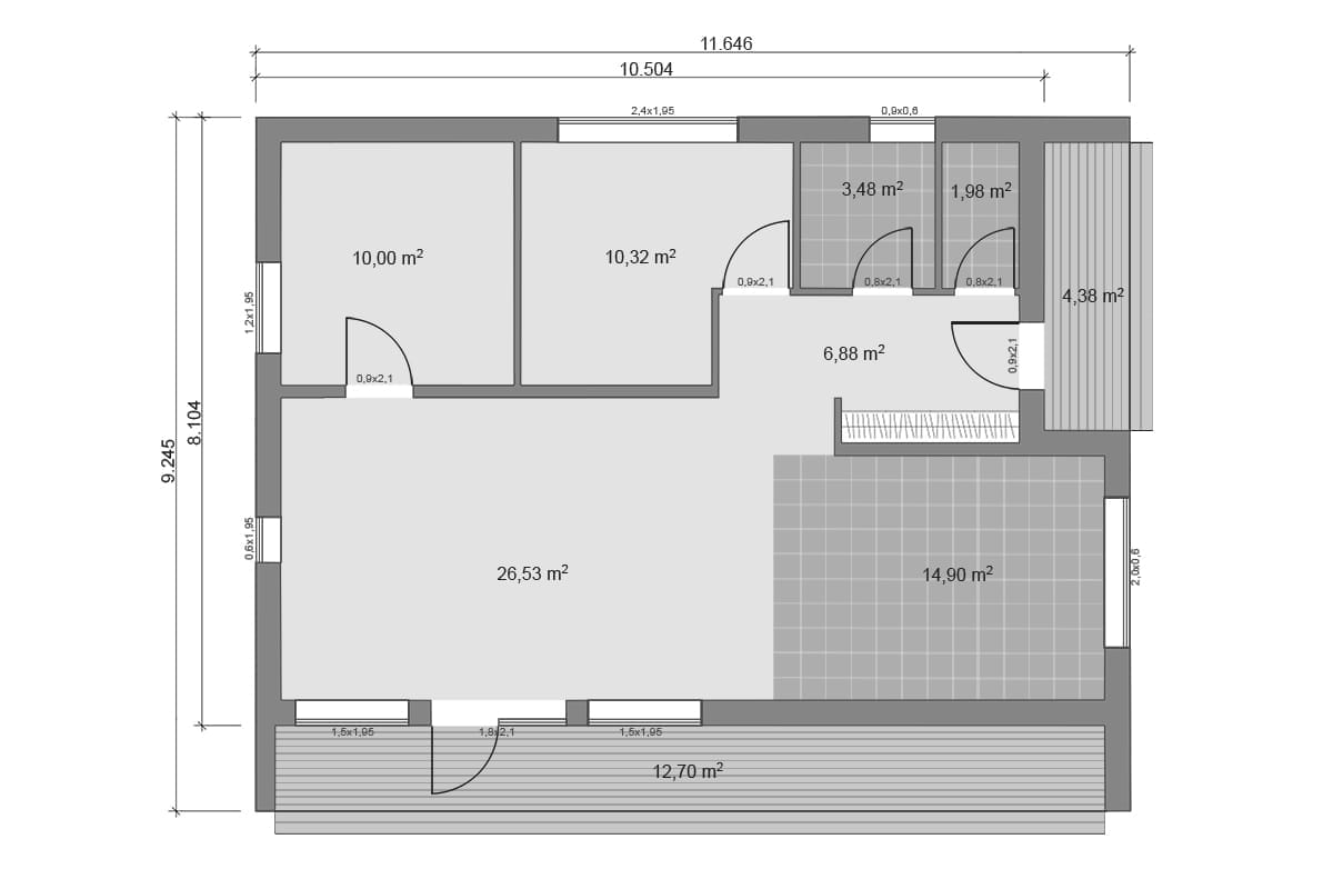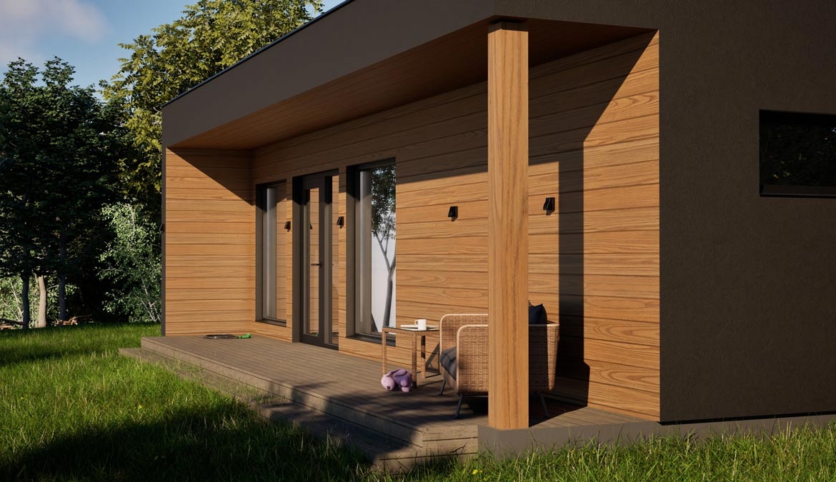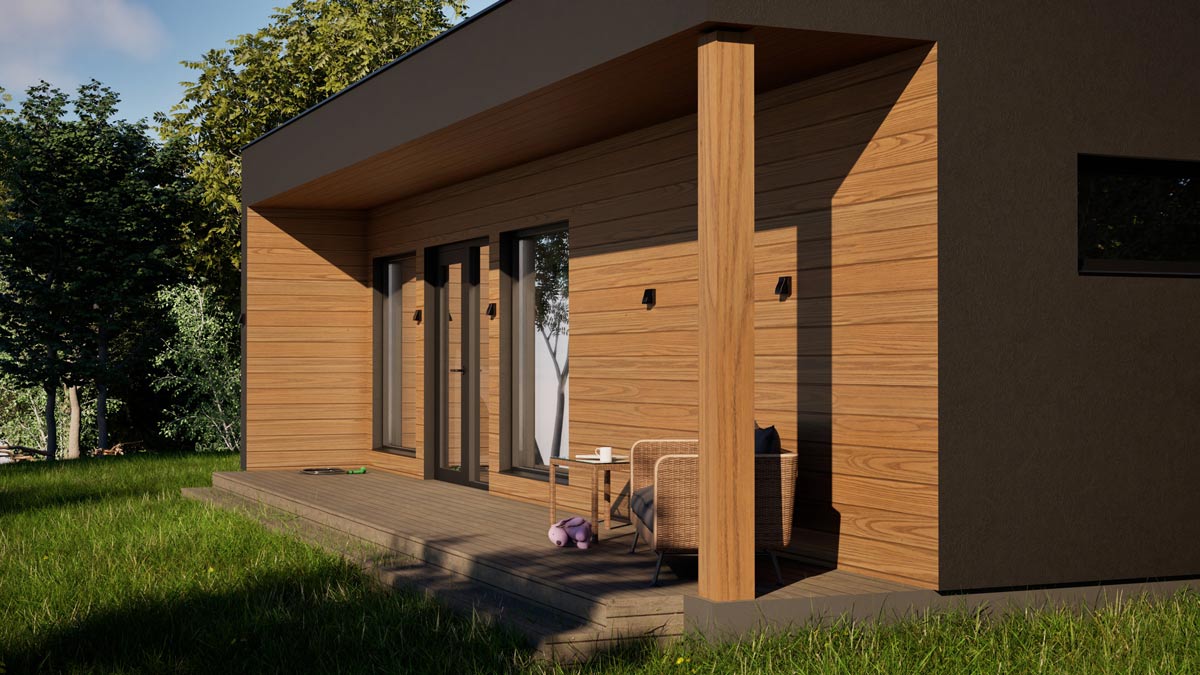 Bona 74 is a prefabricated wooden frame house built by Vitbuve, a prefab manufacturer based in Latvia. This prefab house provides 74.1 m2 of living space, with 2 bedrooms and 1 bathroom.