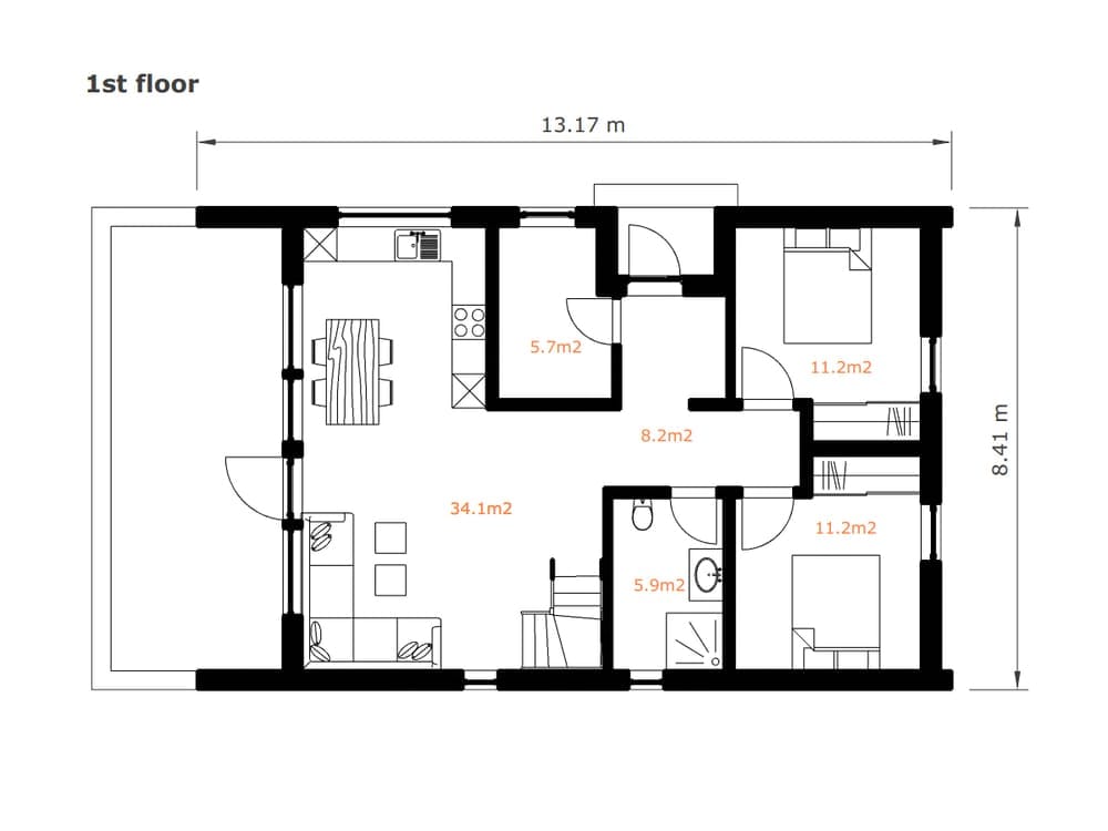 VIT-118 is a prefabricated wooden frame house built by Vitbuve, a prefab manufacturer based in Latvia. This prefab house provides 118.7 m2 of living space, with 4 bedrooms and 2 bathrooms.