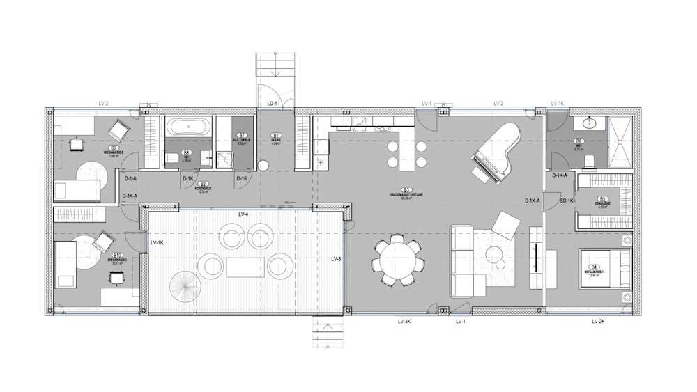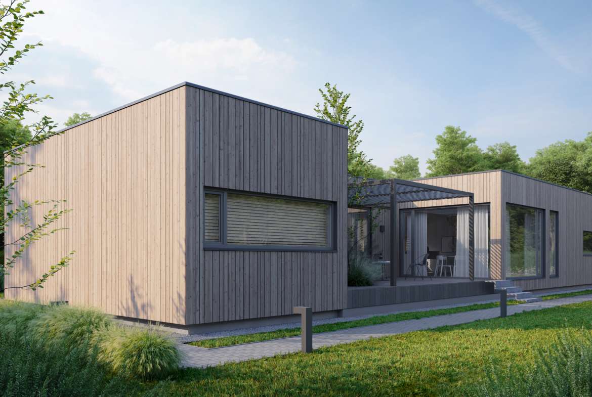 LYFIO Plus is a modular house built from durable metal construction by Lyfio, a prefab manufacturer based in Lithuania. This modular house provides 127 m² of living space with three bedrooms and two bathrooms.