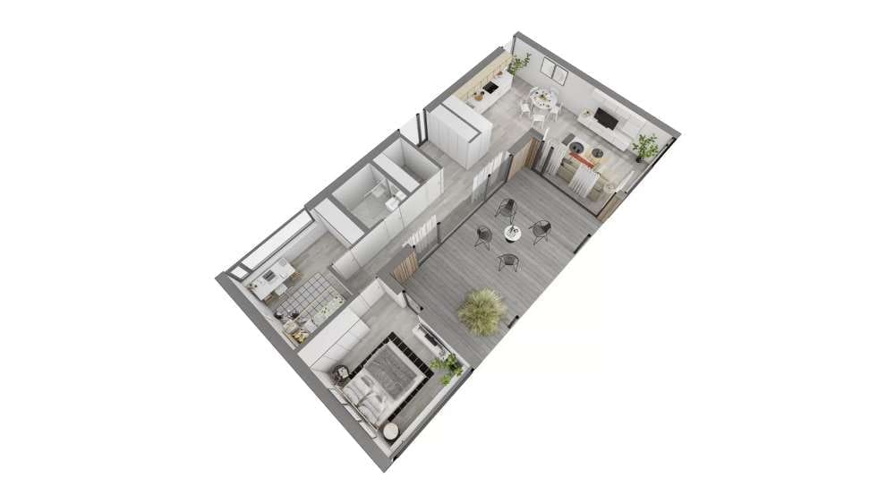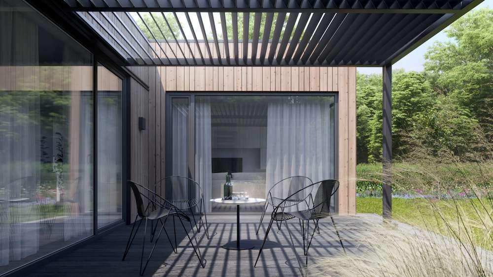 LYFIO Compact is a modular house built from durable metal construction by Lyfio, a prefab manufacturer based in Lithuania. This modular house provides 74 m² of living space with two bedrooms and one bathroom.