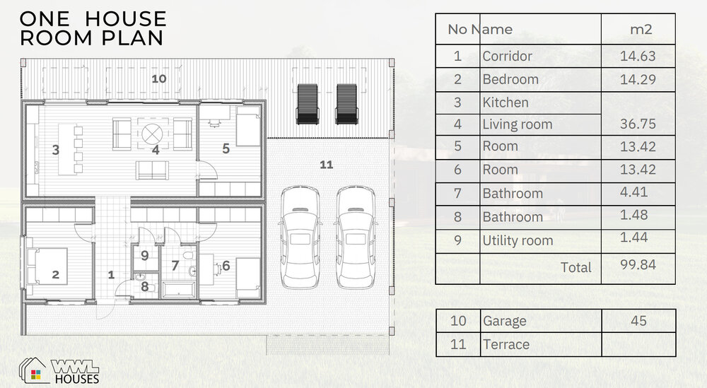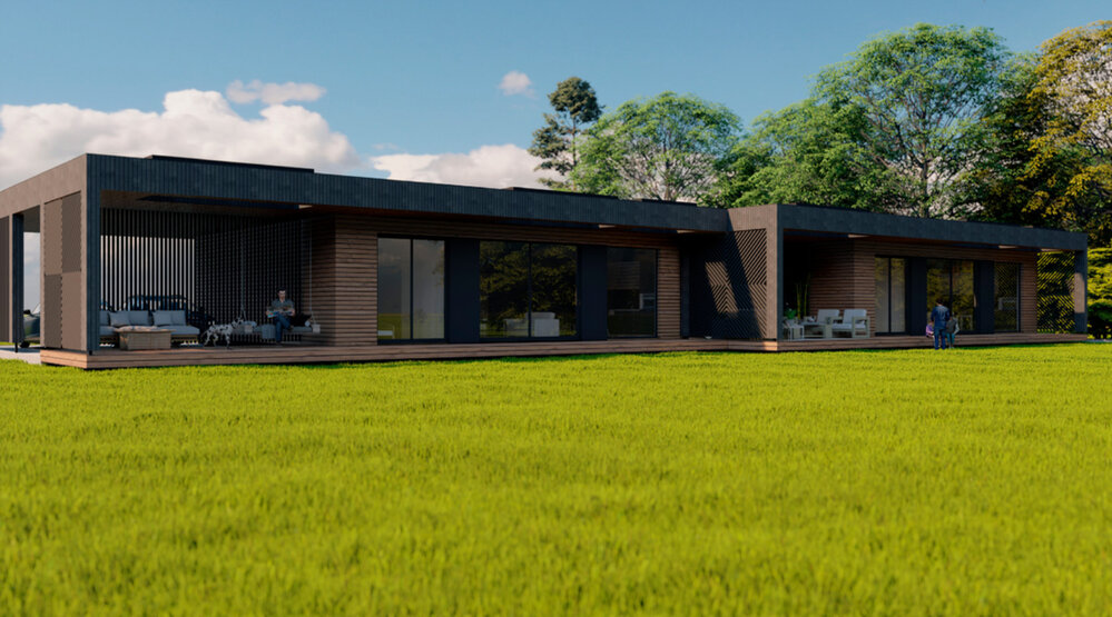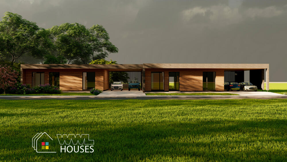 Eden House is a prefab house built by WWL Houses, a prefab manufacturer based in Latvia. This prefab house provides 98m² of living space, with 3 bedrooms and 2 bathrooms.
