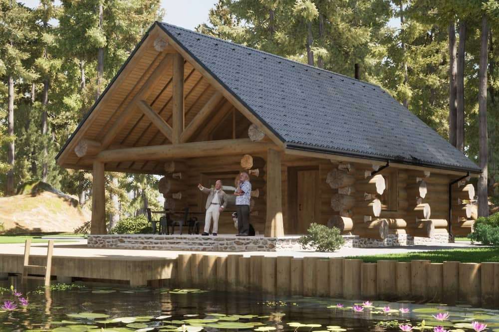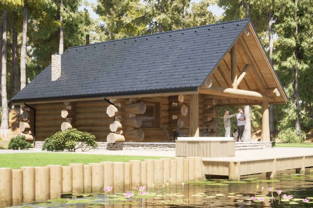 Bear is a log cabin built by UAB Zaskov-Grup, a house manufacturer based in Lithuania. This log house provides 97.1 m² of living space over two floors, with one bedroom and one bathroom.