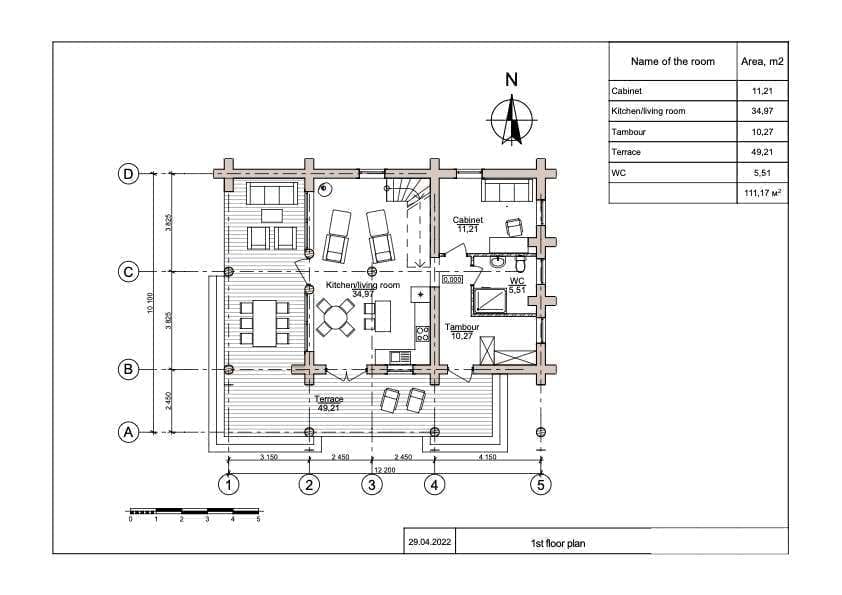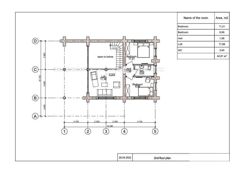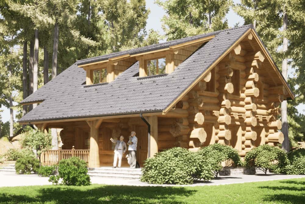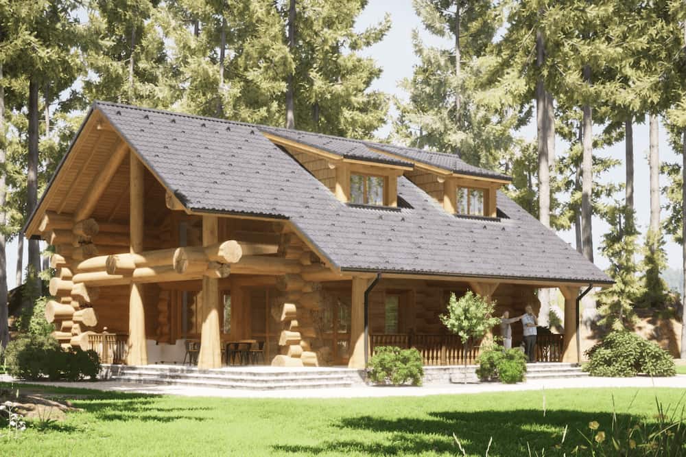 Irina is a log house built by UAB Zaskov-Grup, a house manufacturer based in Lithuania. This log house provides 112.8 m² of living space over two floors, with two bedrooms and two bathrooms.