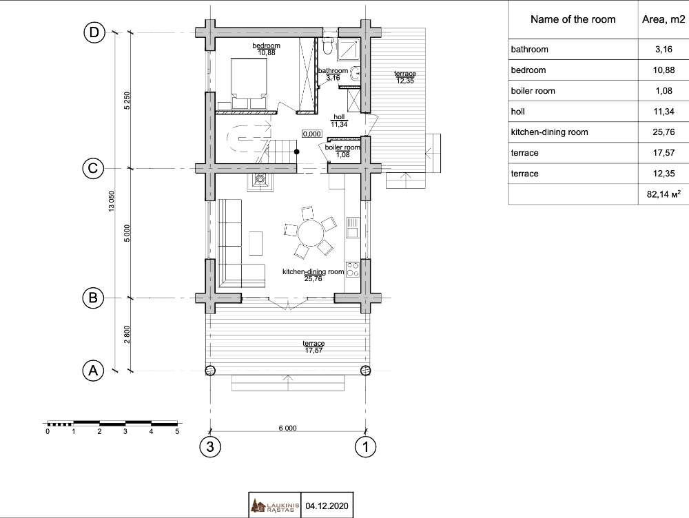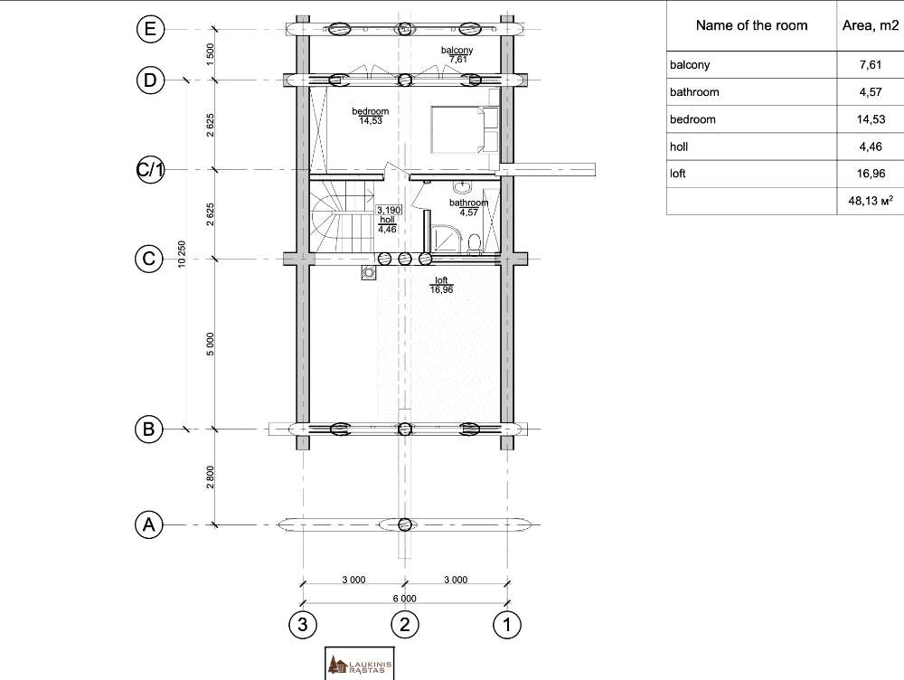 Ruta’s House is a log house built by UAB Zaskov-Grup, a house manufacturer based in Lithuania. This log house provides 79 m² of living space over two floors, with two bedrooms and two bathrooms.
