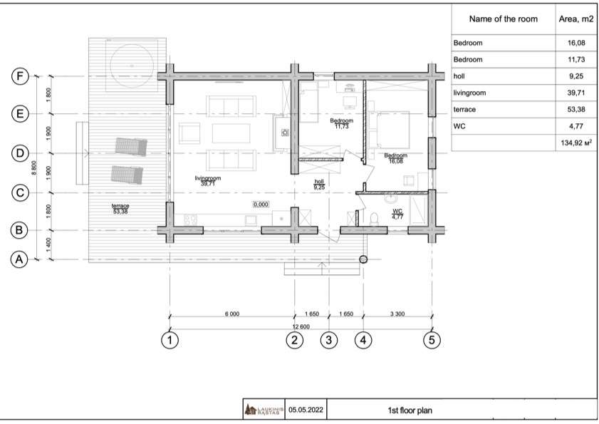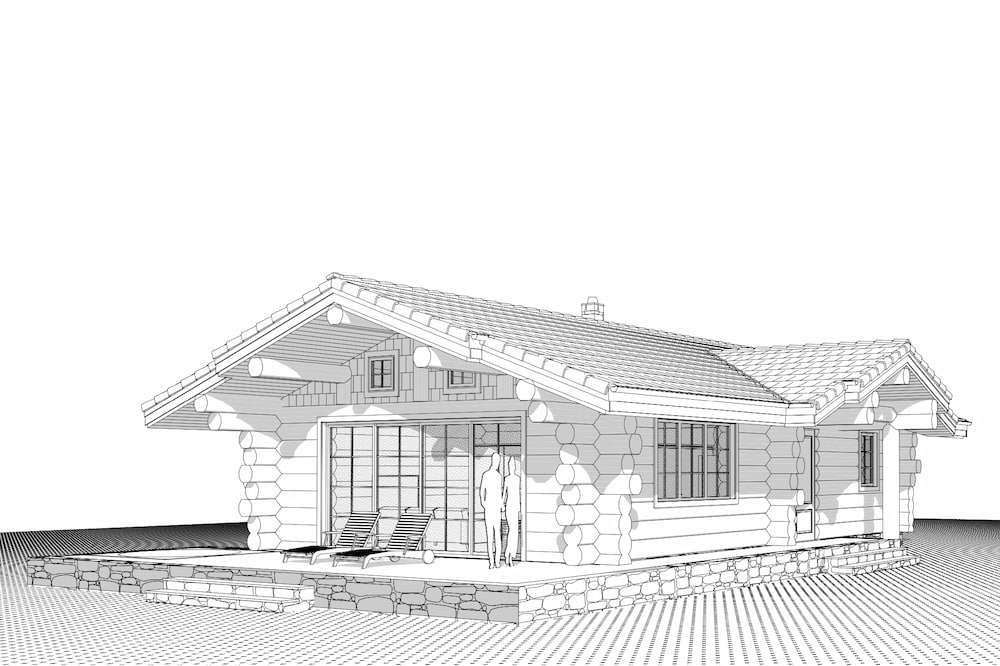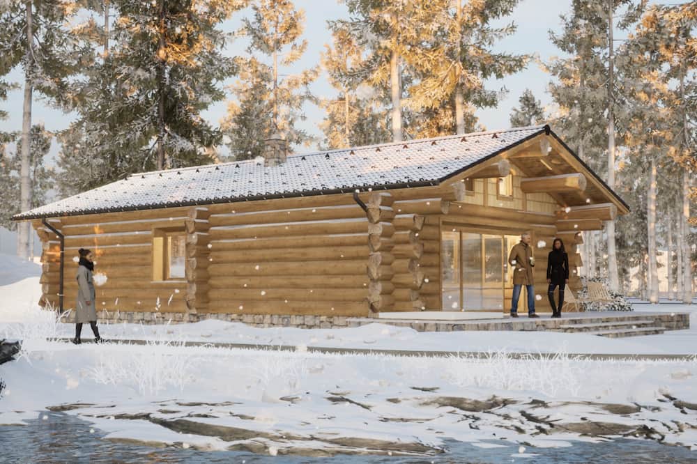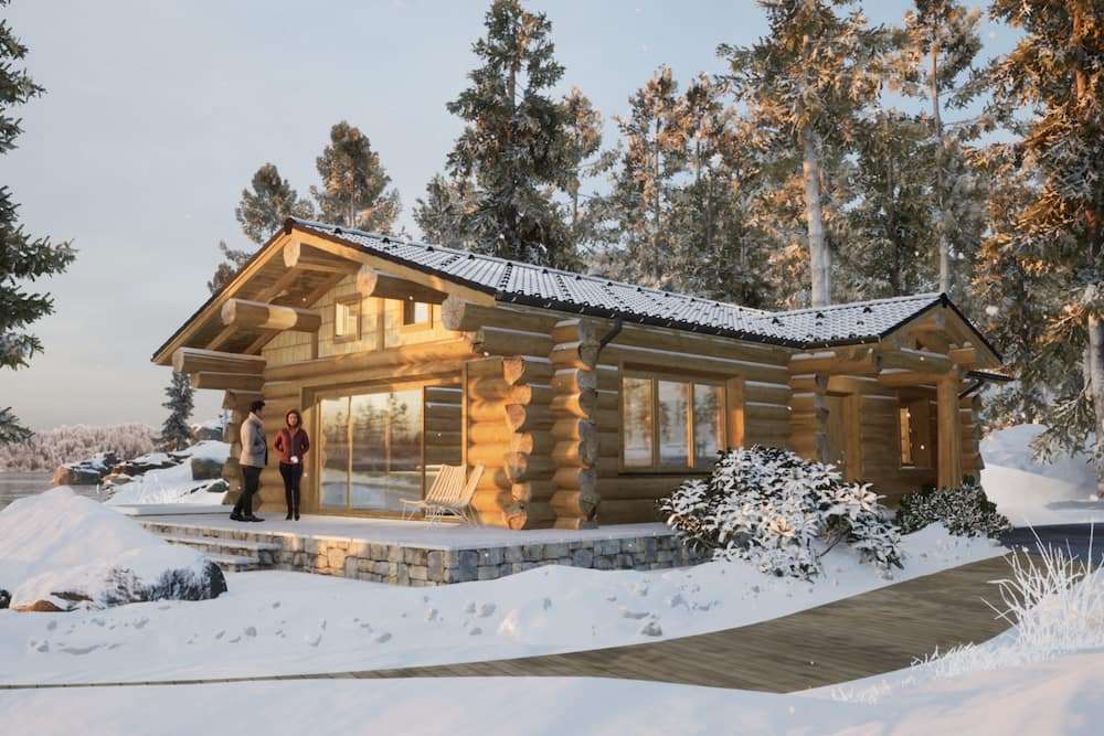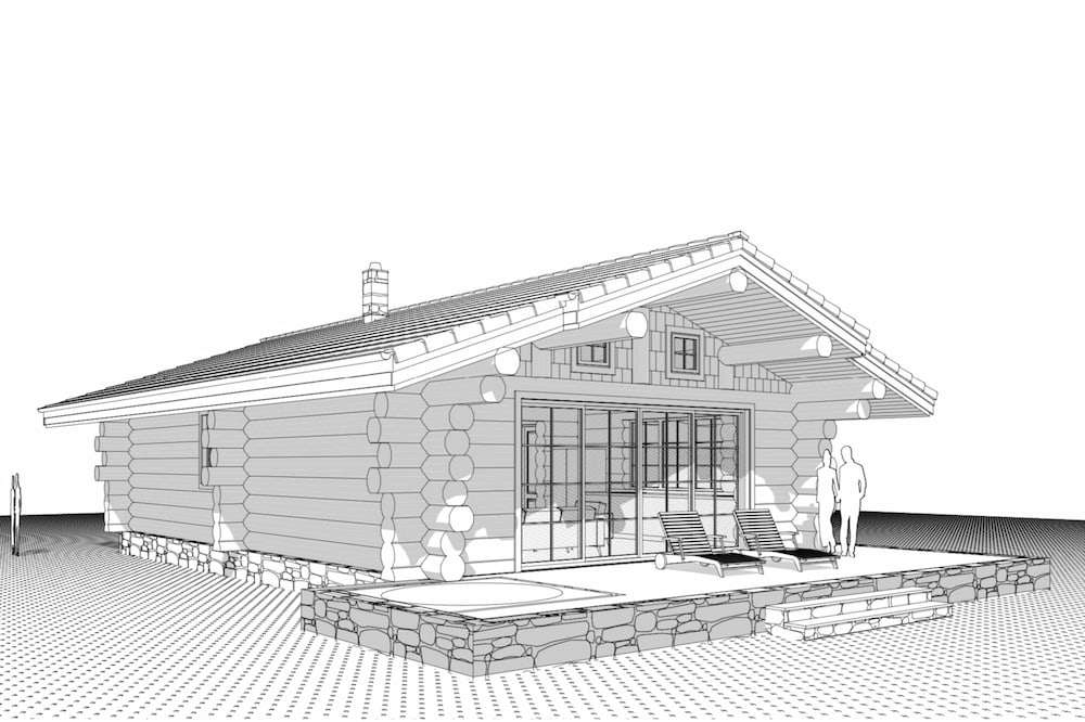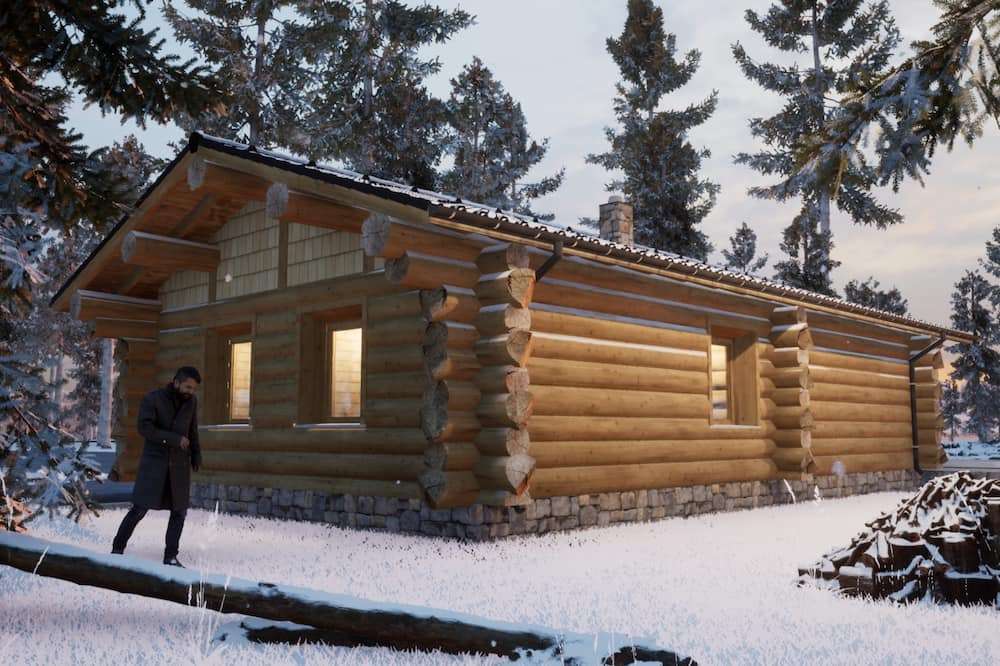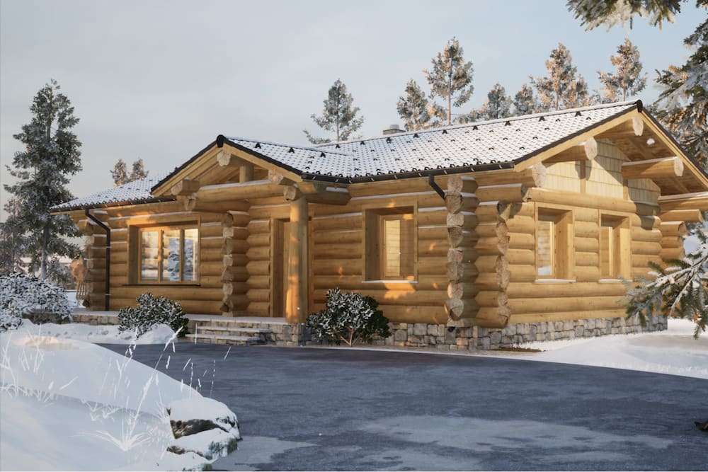 Wooden is a log house built by Zaskov-Grup, a prefab manufacturer based in Lithuania. This log house provides 81 m² of living space with two bedrooms and one bathroom